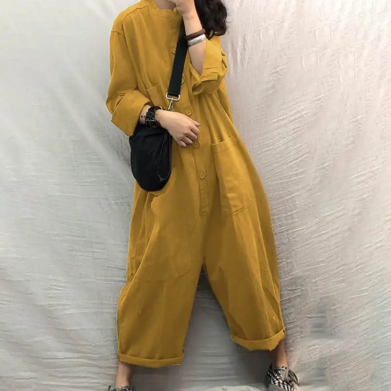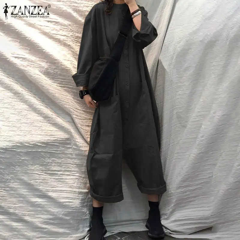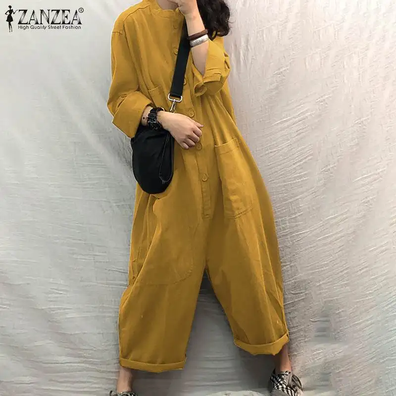 Комбинезон ZANZEA женский однотонный, винтажный Повседневный ромпер с длинным рукавом, брюки на пуговицах, осень 2022