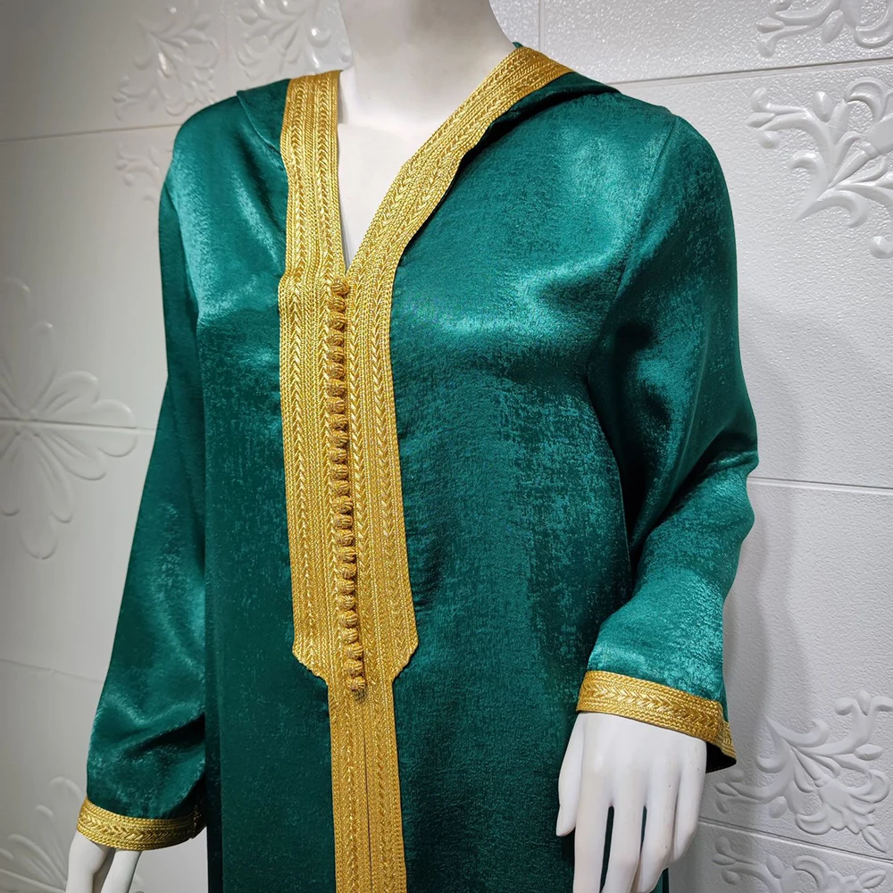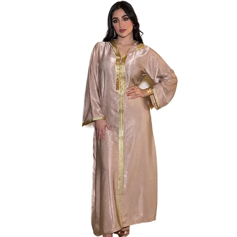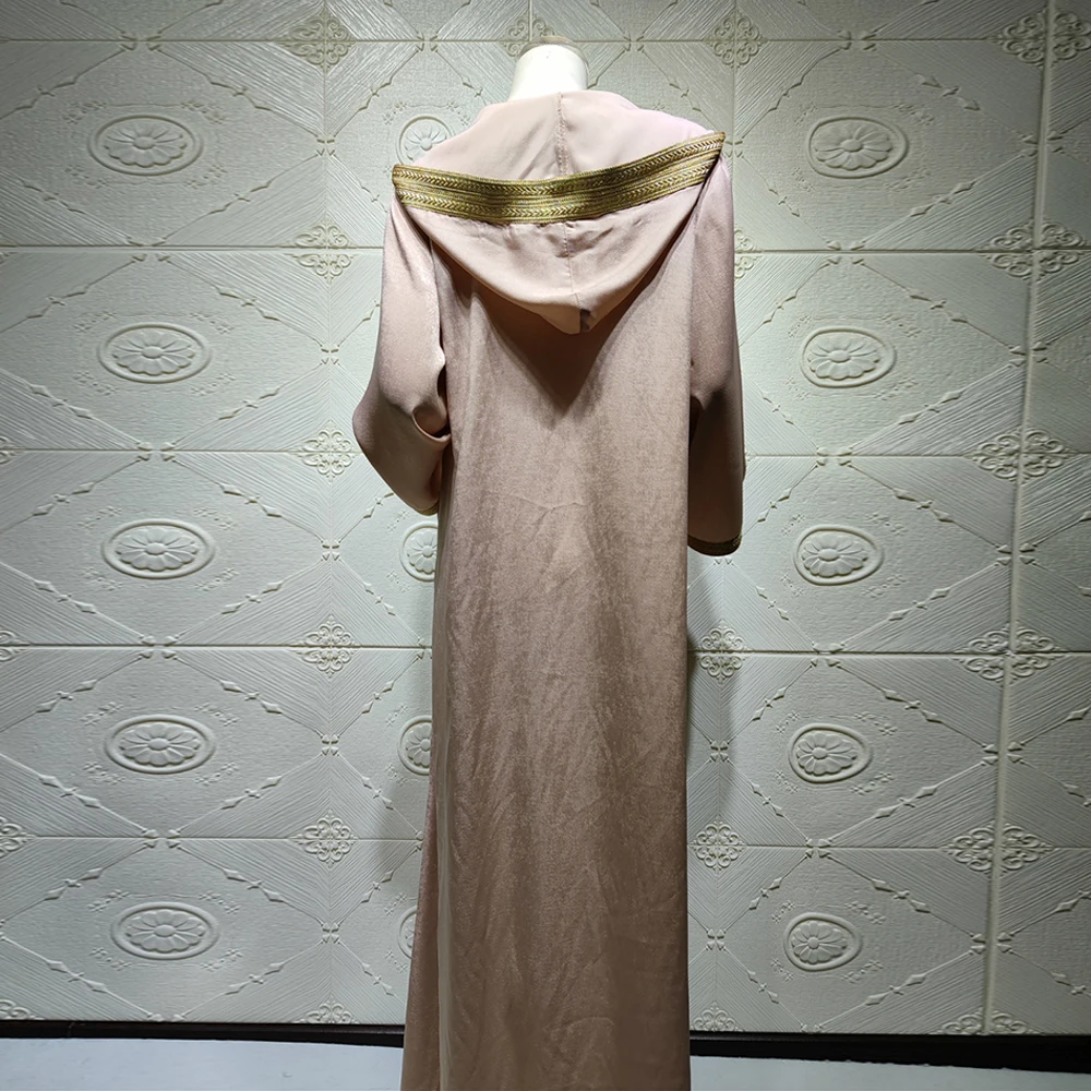 Дубай абайя Макси платье Jalabiya с капюшоном ленты цвета шампанского ислам мусульманских женщин марокканский кафтан арабский Турция африканская Роба 2022