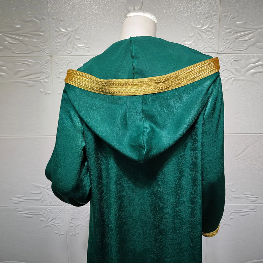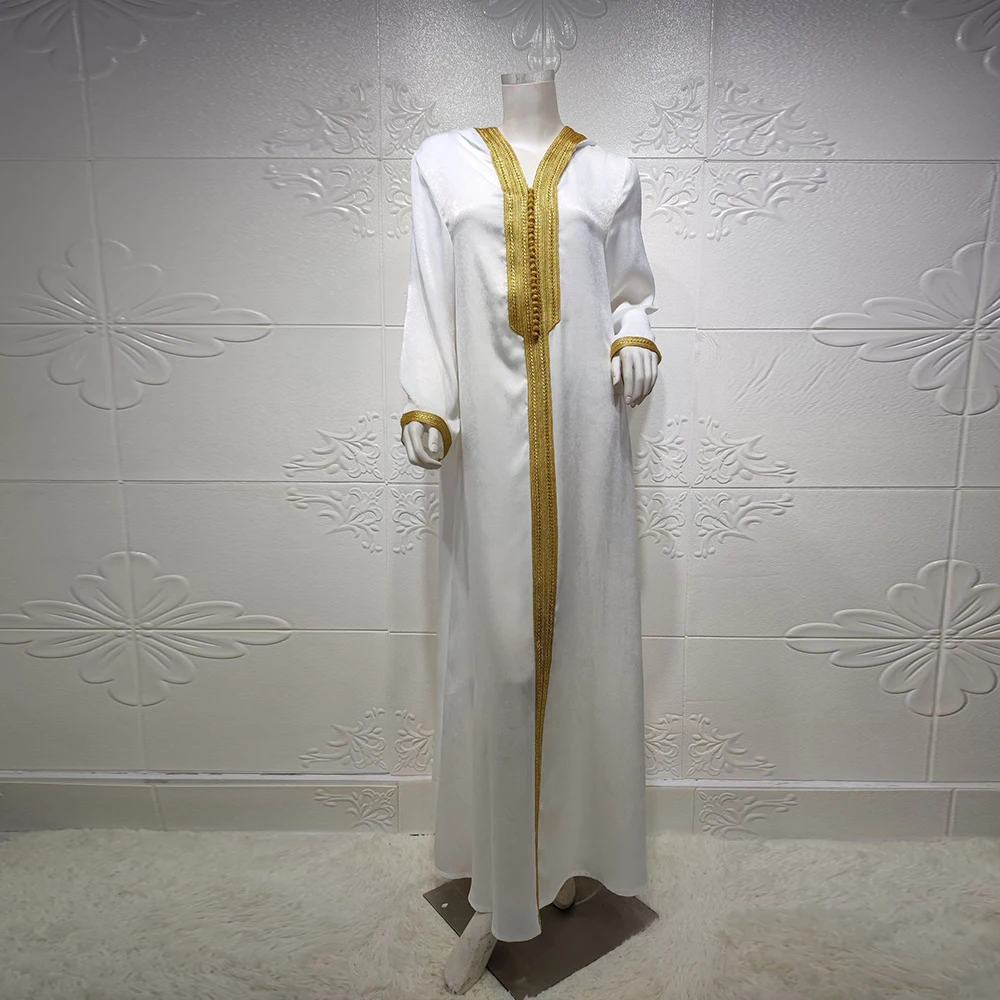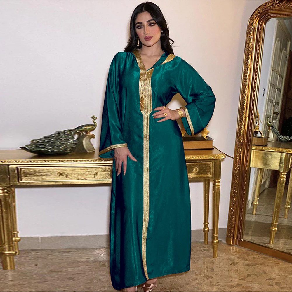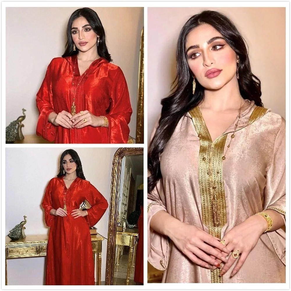 Дубай абайя Макси платье Jalabiya с капюшоном ленты цвета шампанского ислам мусульманских женщин марокканский кафтан арабский Турция африканская Роба 2022