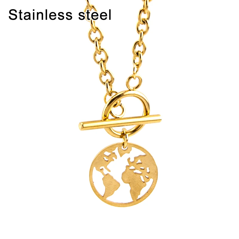 Женское колье с подвеской в виде карты и сердца, из нержавеющей стали