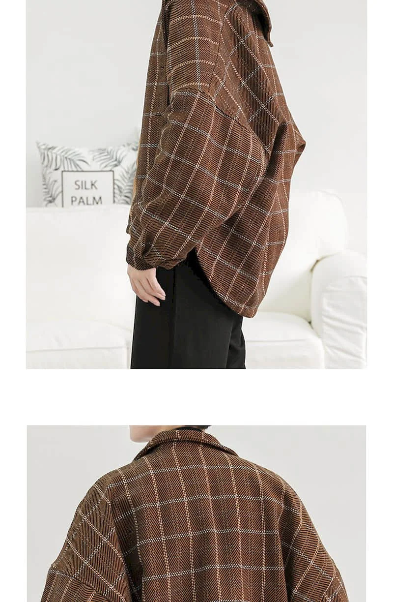 2021 клетчатая Толстая рубашка, уличная одежда, пальто, простая рет...