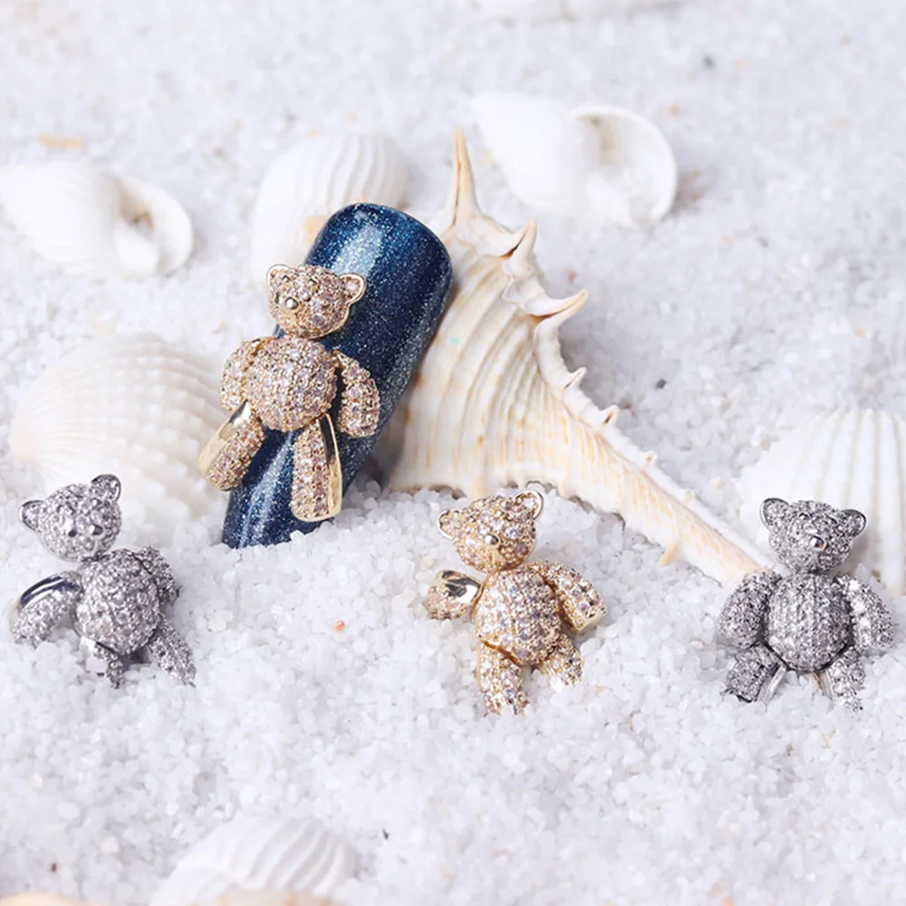 3D роскошный золотой серебряный цвет медведь сплав Цирконий украшения для ногтей блестящие кристаллы украшения для ногтей Стразы аксессуары для ногтей