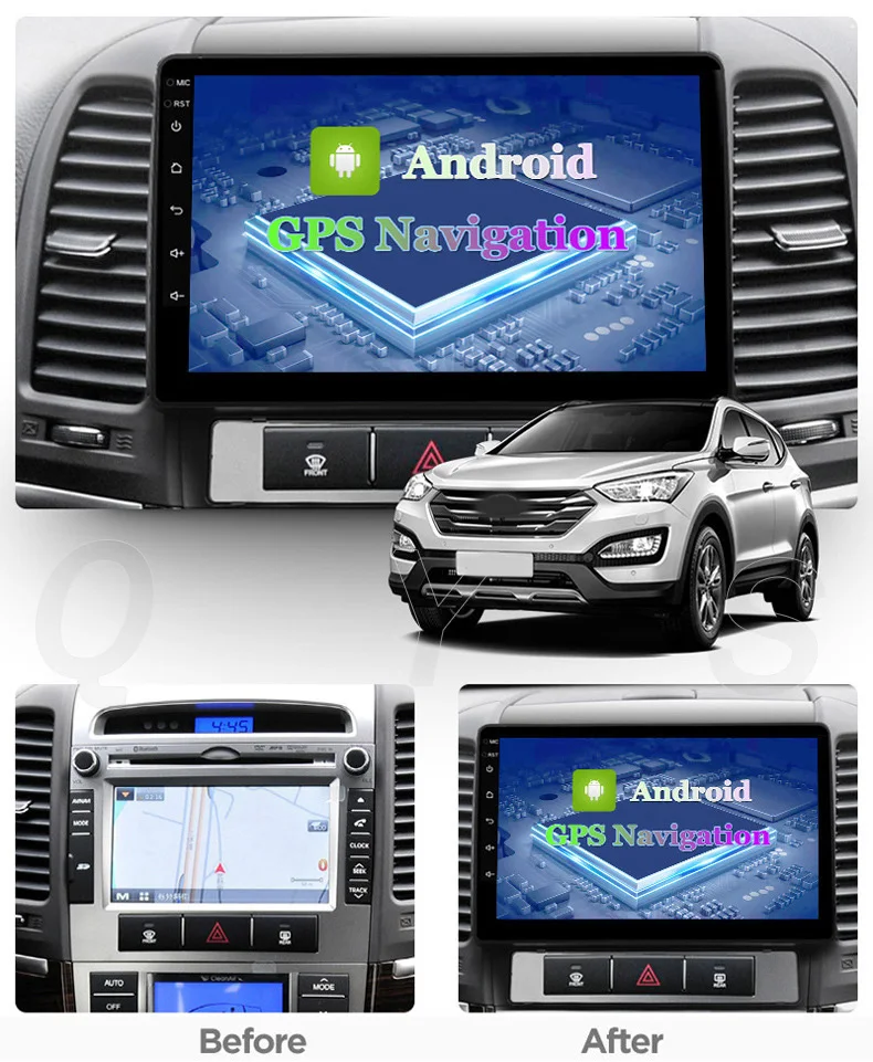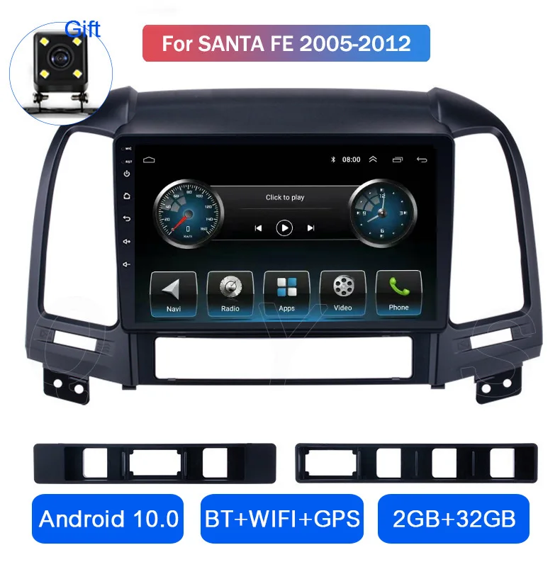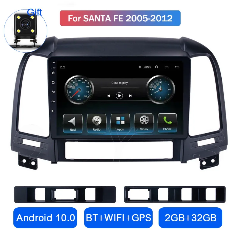 Автомагнитола для Hyundai Santa Fe 2005, 2006, 2007, 2008, 2009, 2010, 2011, 2012, Android 10, GPS-навигация