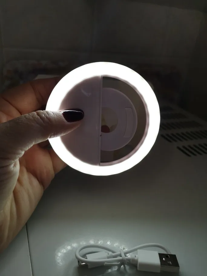 Хороший продукт. Поставляется с USB-кабелем для зарядки. Несколько интенсивностей света с маленькой кнопкой на спине. Очень хорошо освещает очень доволен своей покупкой Я рекомендую для всего, что селфи и т. Д. И дать больше света ночью тоже