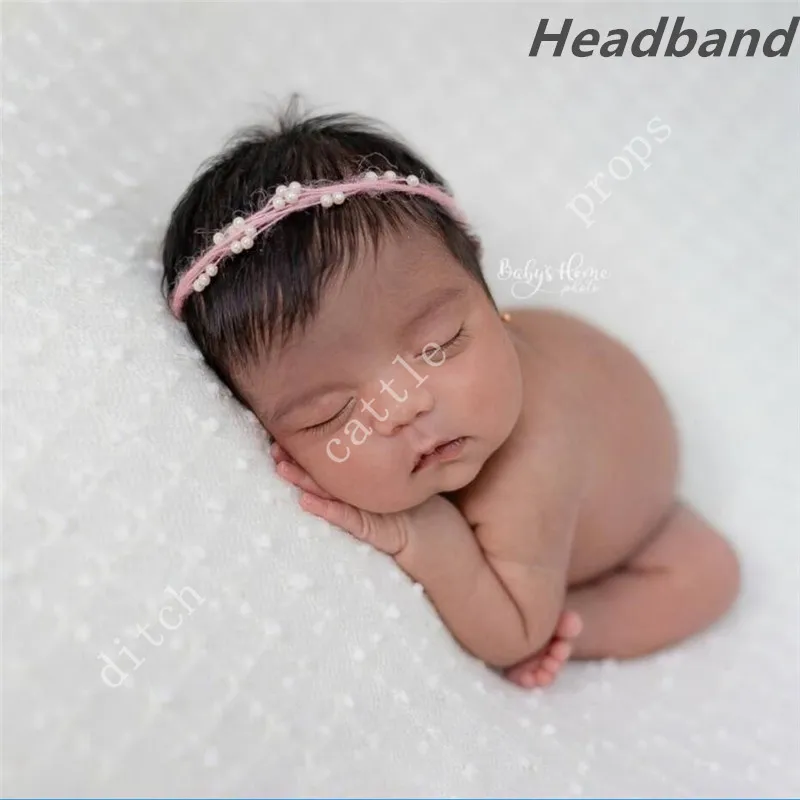 Мохеровая пластиковая повязка на голову с бусинами реквизит для фотосъемки новорожденных
