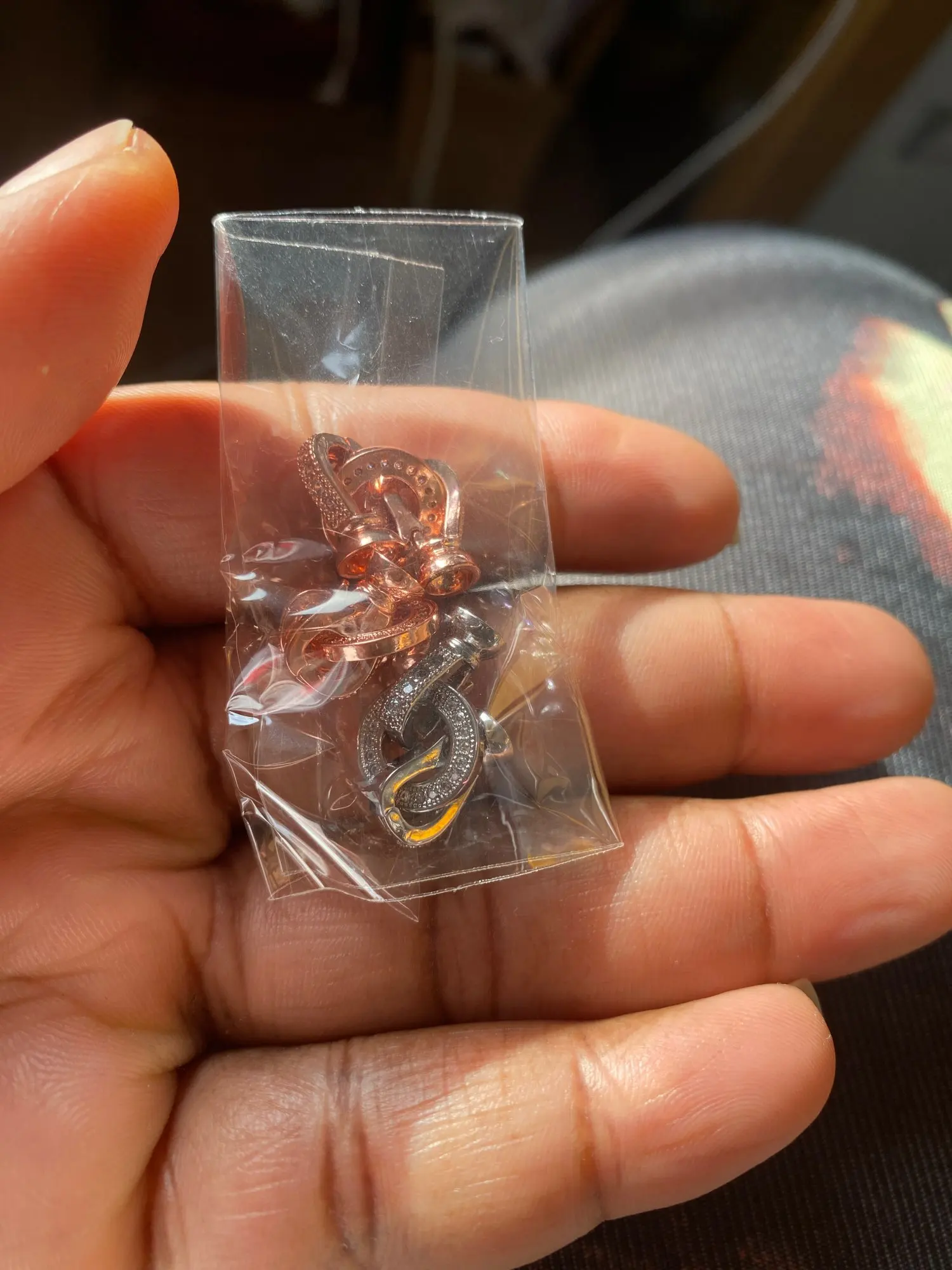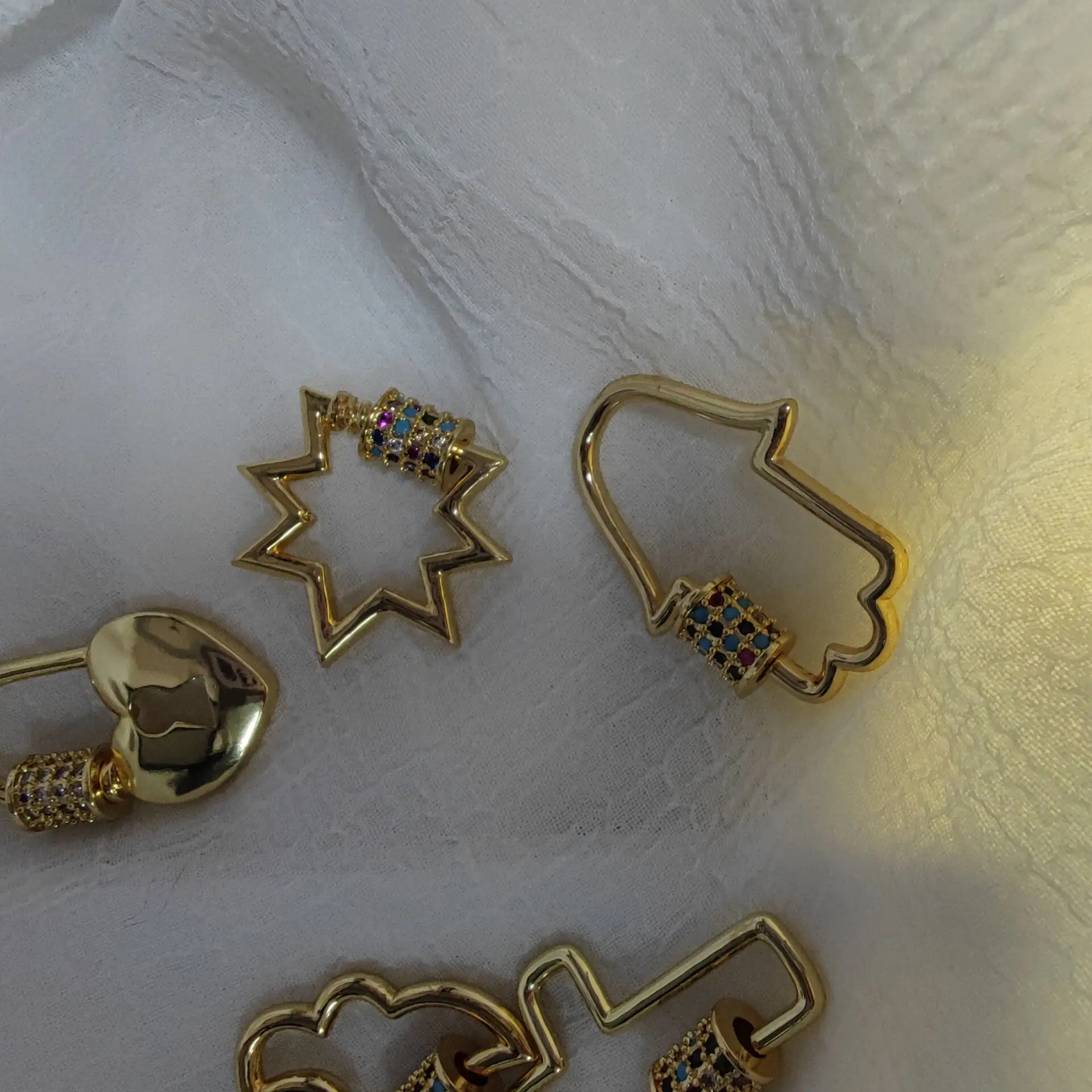 Супер быстрая доставка, заказала 11.01, пришло 23.01. Удобная красивая застёжка. Много вариантов использования, можно делать съёмные подвески для бус. С длинными ногтями гораздо удобнее застегивать, чем стандартные карабины. Качество понравилось. Если быстро не облезет, буду заказывать ещё в этом магазине.