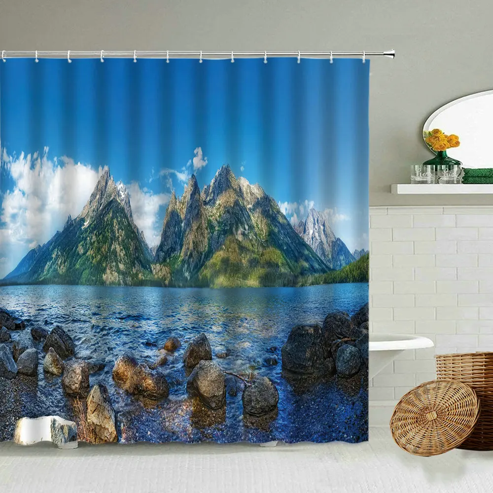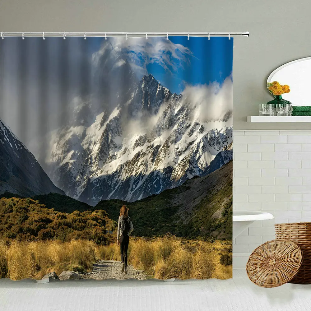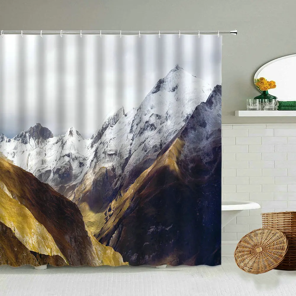 Занавеска для душа с природным пейзажем, водонепроницаемая Штора для ванной комнаты для зимнего скалолазания, снега, гор, леса, с крючком, украшение для дома