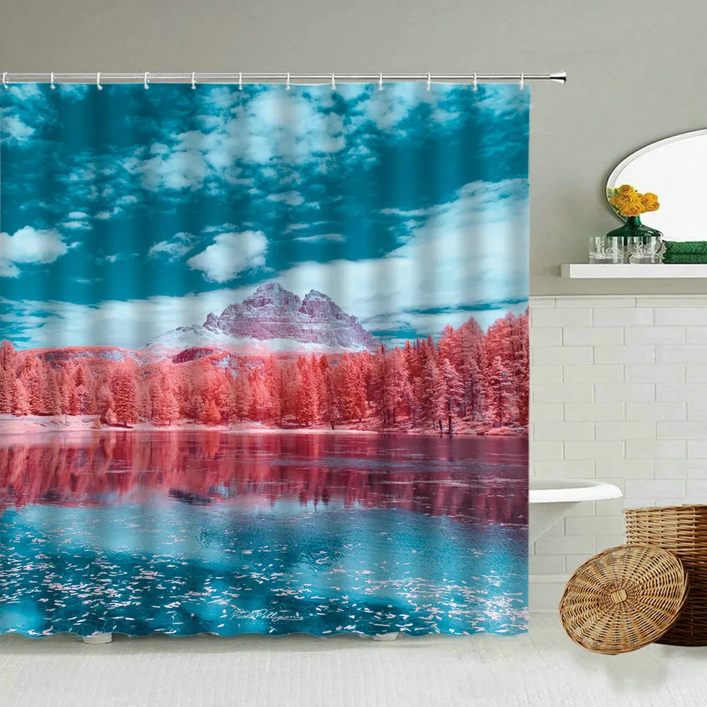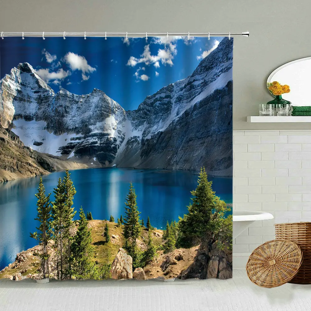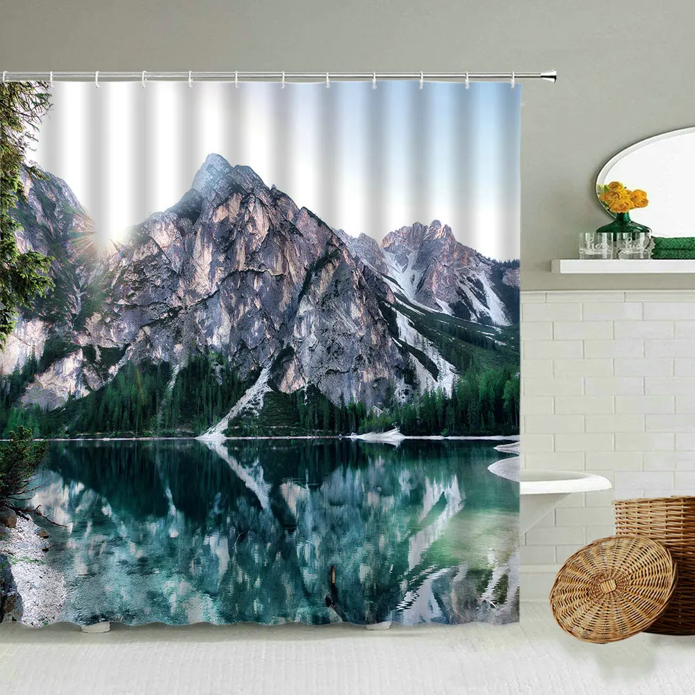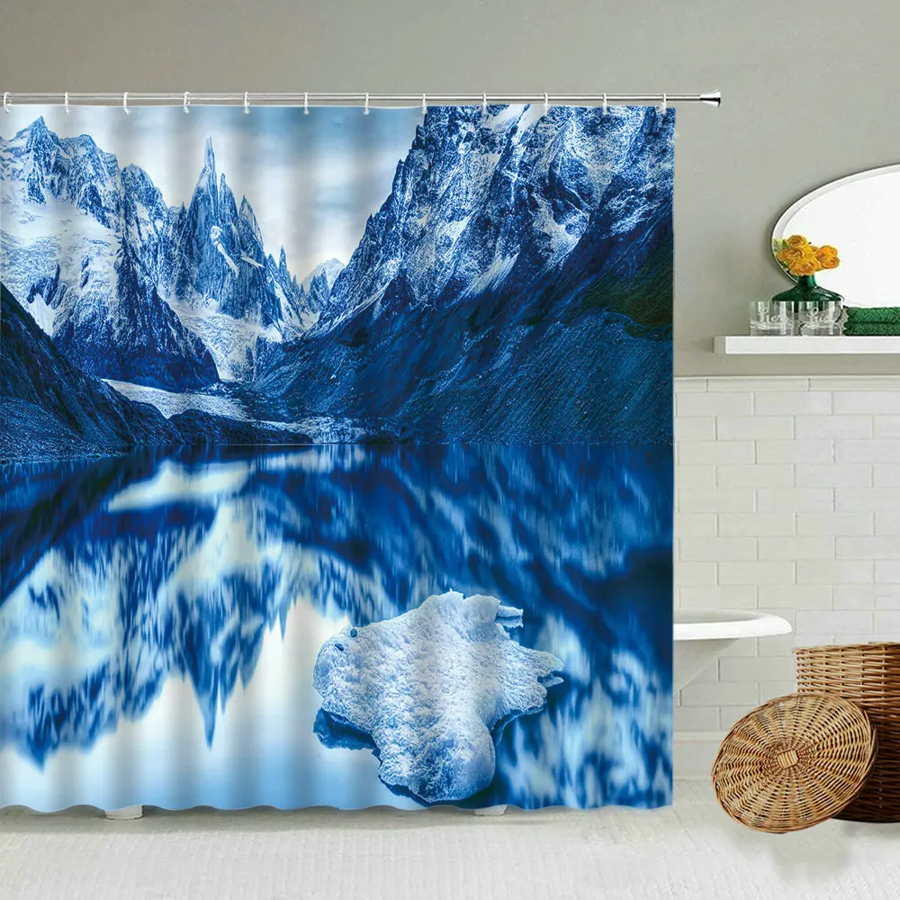 Занавески для душа с природными пейзажами, снежные горные леса, зимние альпинистские водонепроницаемые занавески для ванной комнаты, украшение для дома с крючком