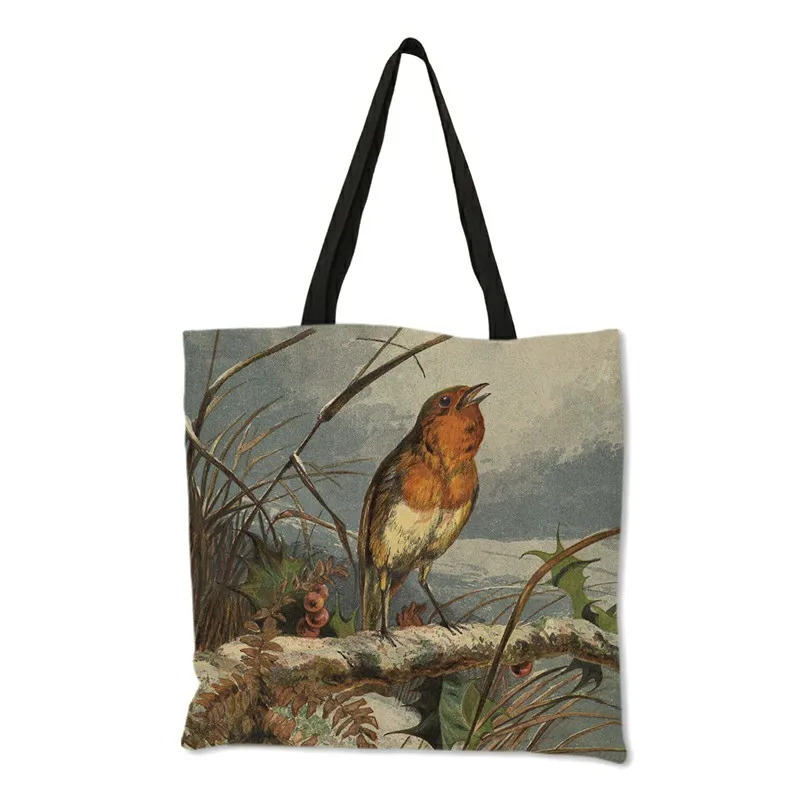 Симпатичная Льняная сумка-тоут с принтом маленькой птицы, женские т...