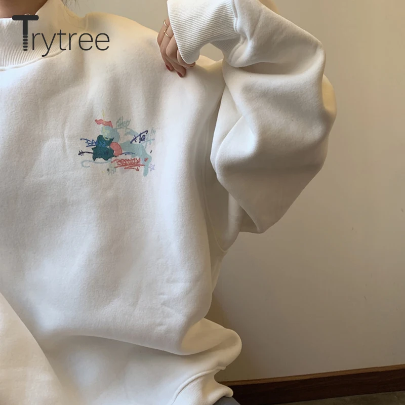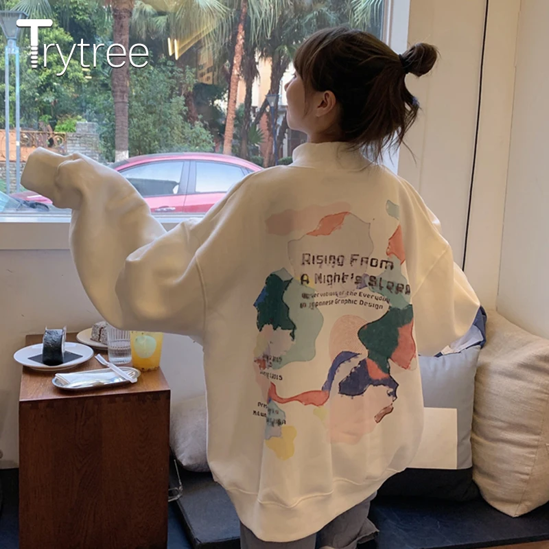 Зимние Повседневные женские свитшоты Trytree 2020, Женский Топ оверсайз с флисовой подкладкой, круглым вырезом и спущенными плечами и принтом карт