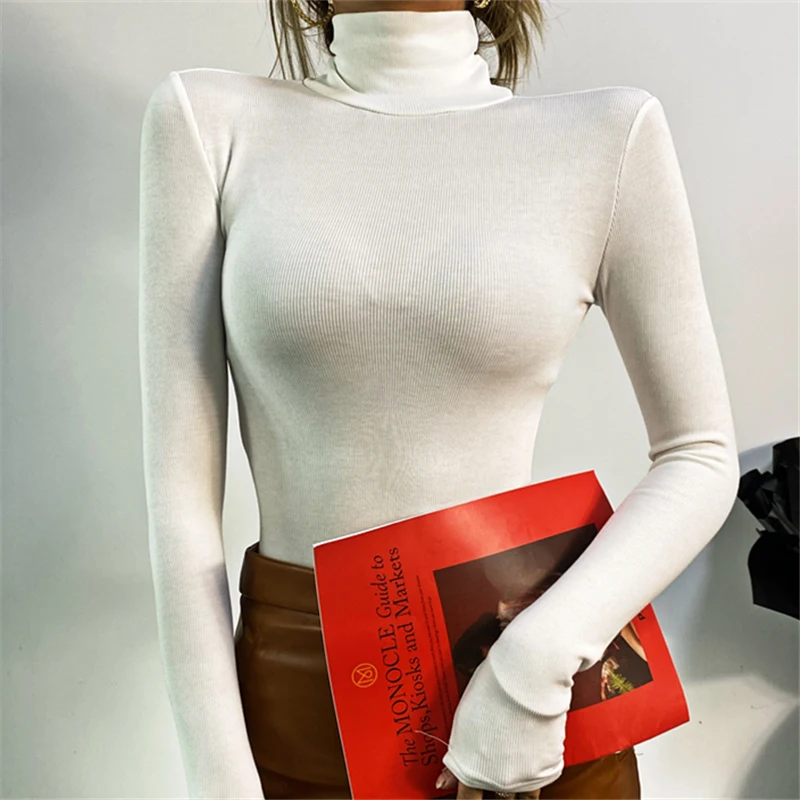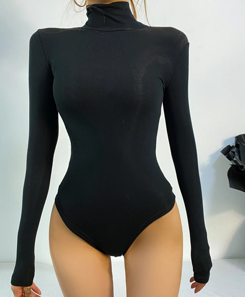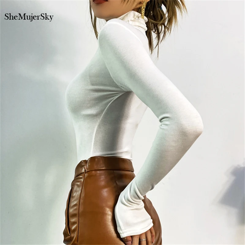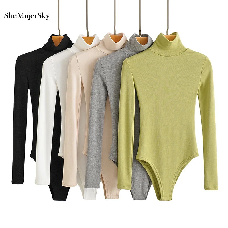 Женское трикотажное боди-водолазка SheMujerSky, однотонный облегающий эластичный комбинезон с длинным рукавом, весна-осень 2021