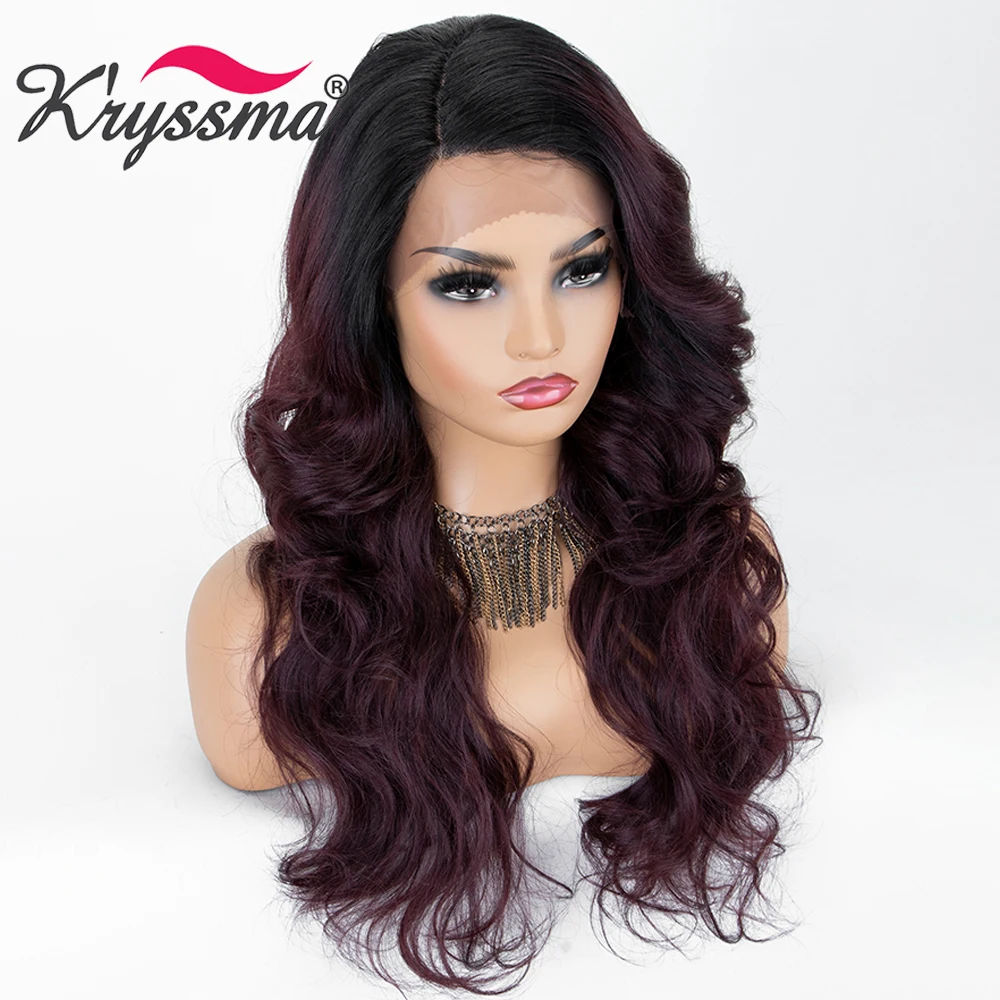 Синтетические парики с кружевом спереди Kryssma, длинные волнистые синтетические парики с эффектом омбре, синтетический парик, темно-коричневый парик, Смешанные черные парики для косплея на Хэллоуин