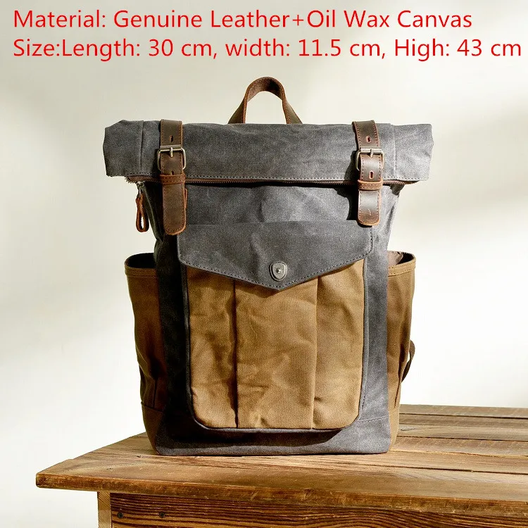 Водонепроницаемый рюкзак, мужской кожаный холщовый рюкзак, школьная...