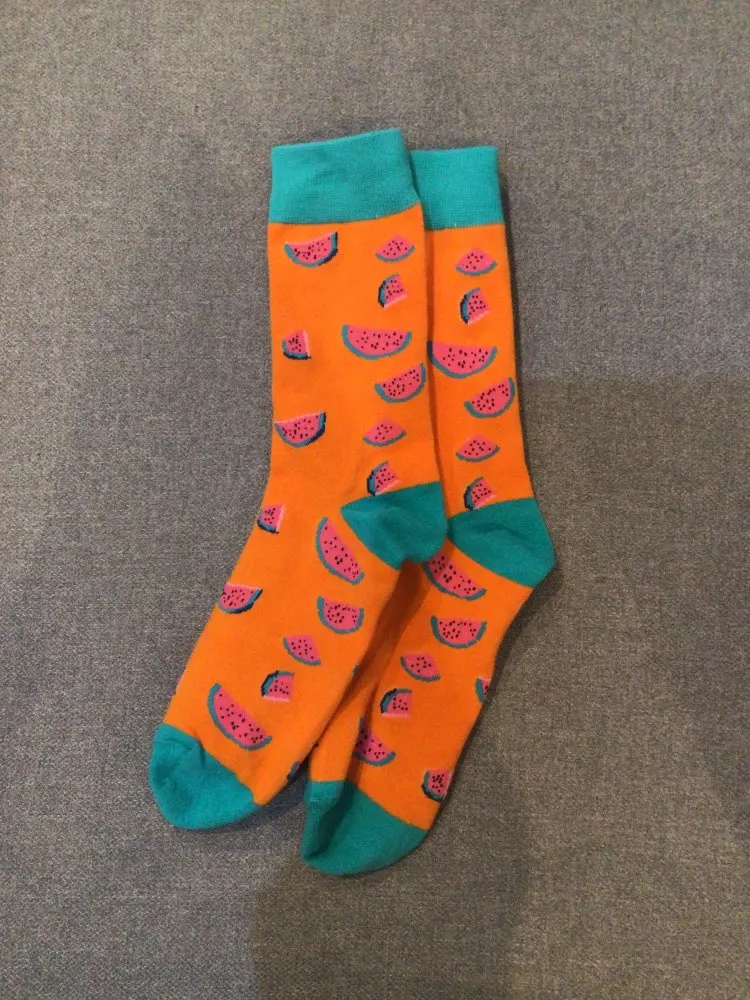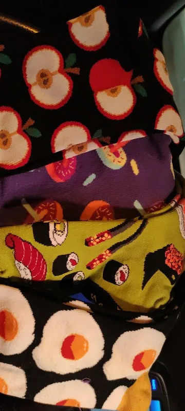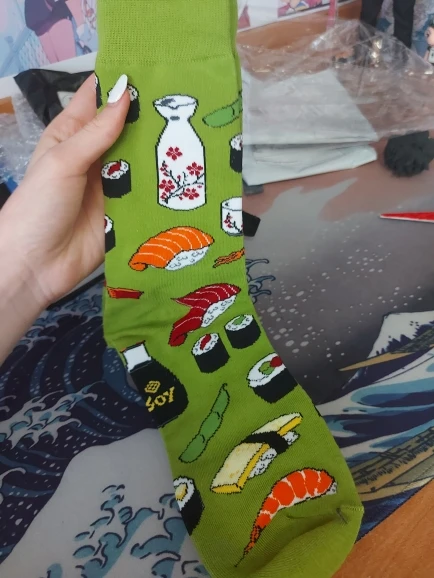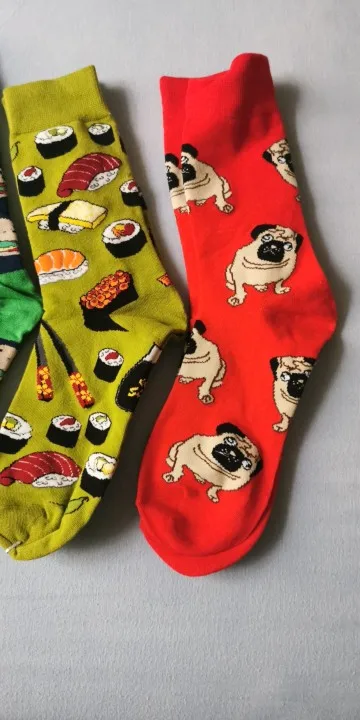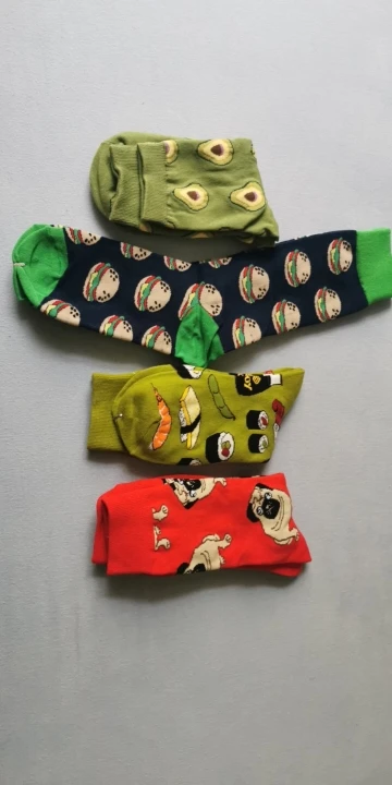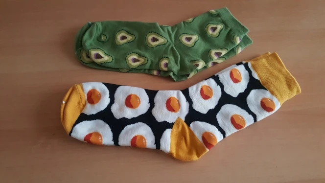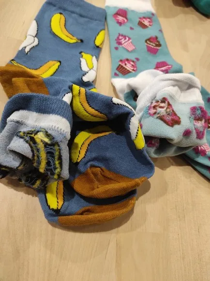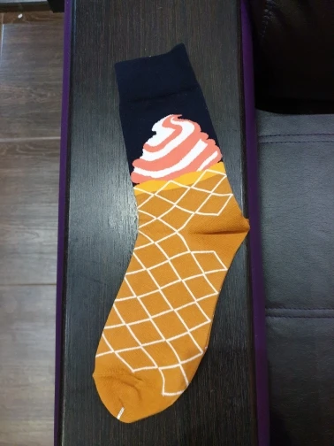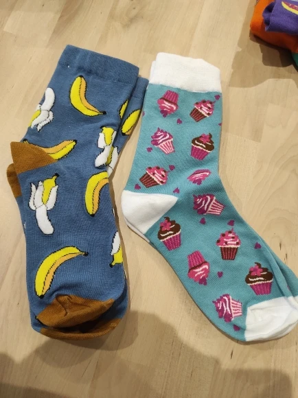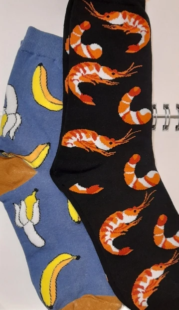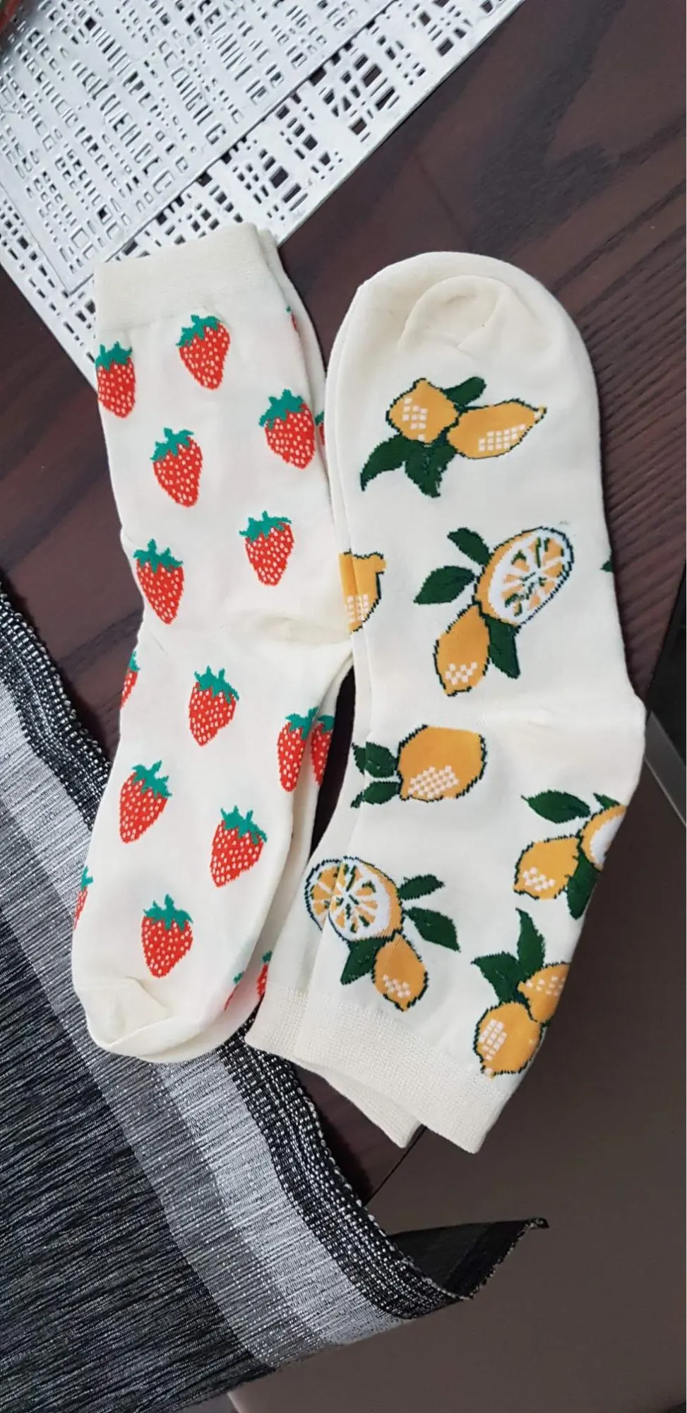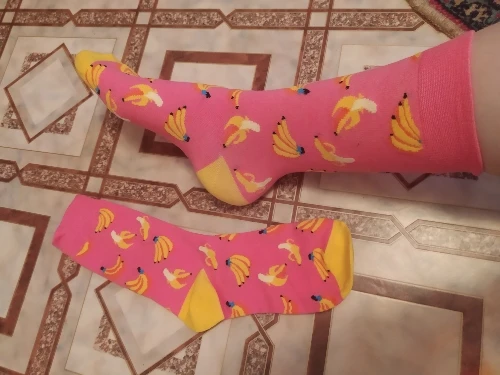 Заказывала носки с яйчницей и лимона и, носки хорошего качества, с яйчницей длиннее и размер побольше, с лимонами короче.