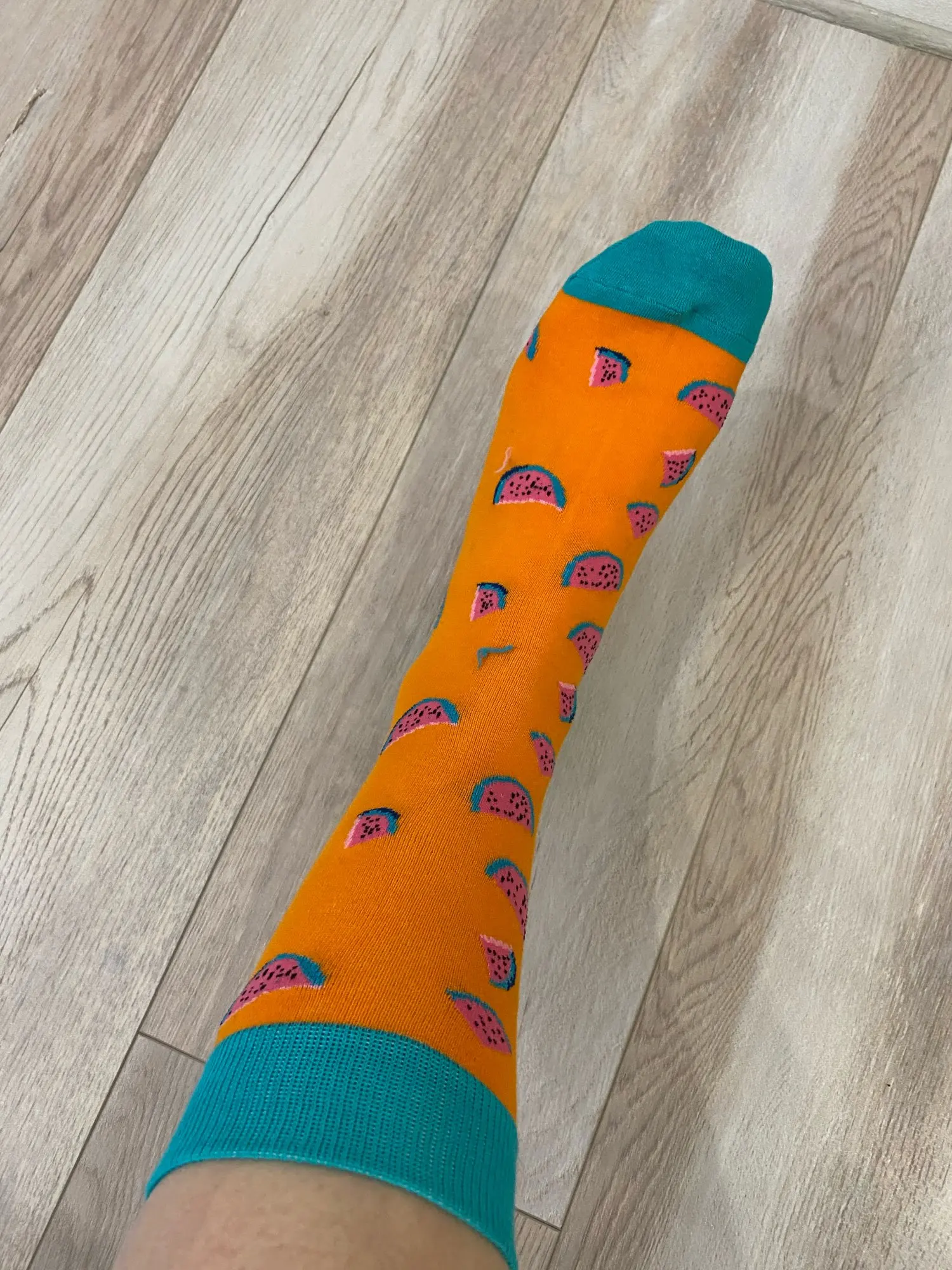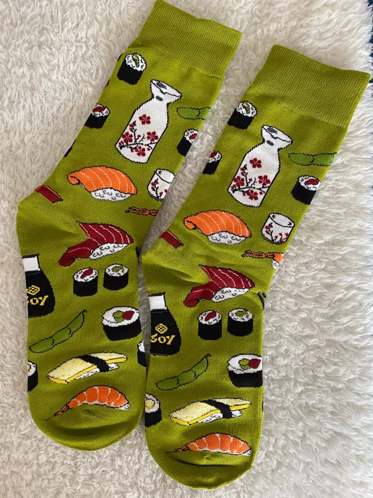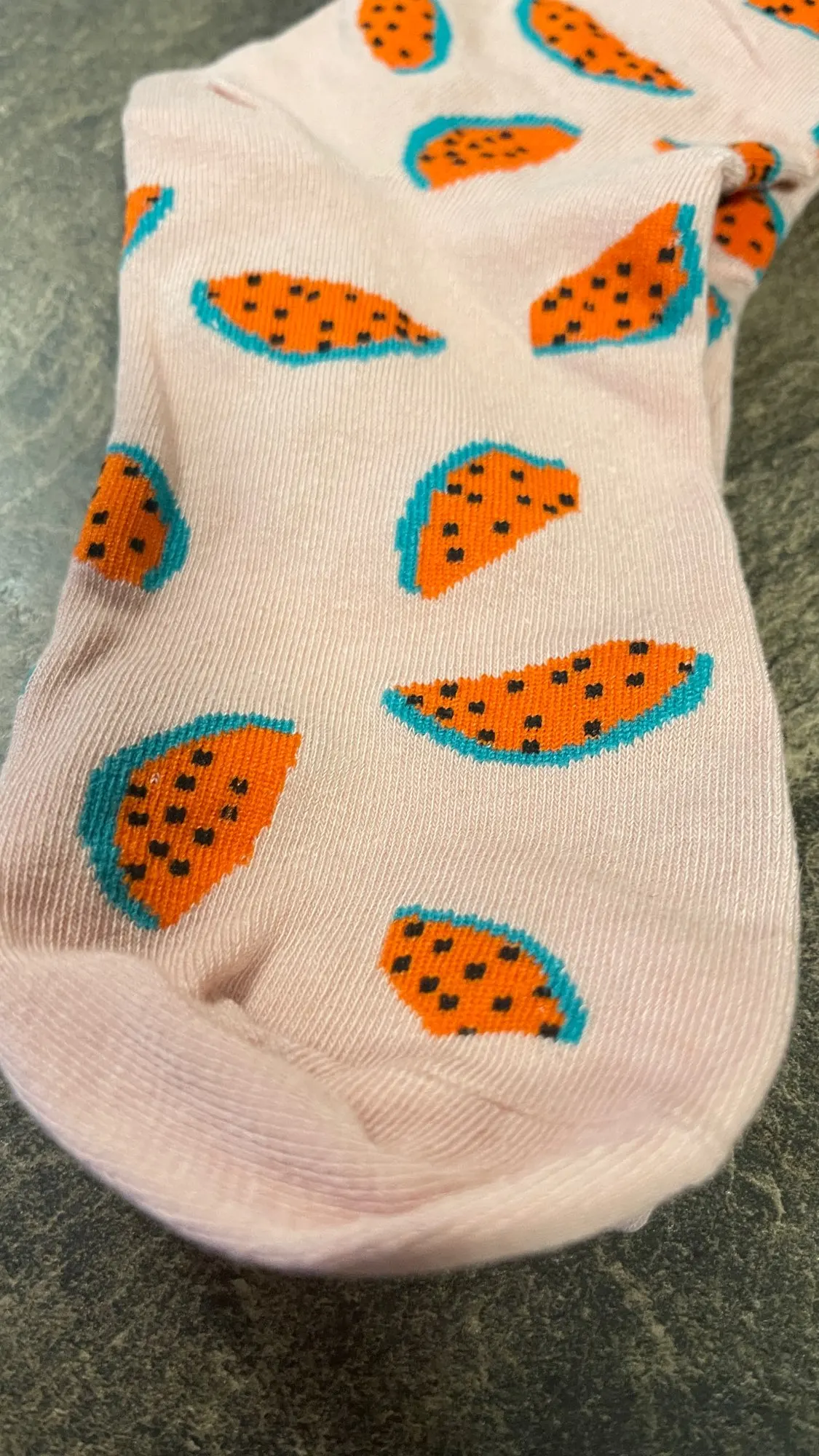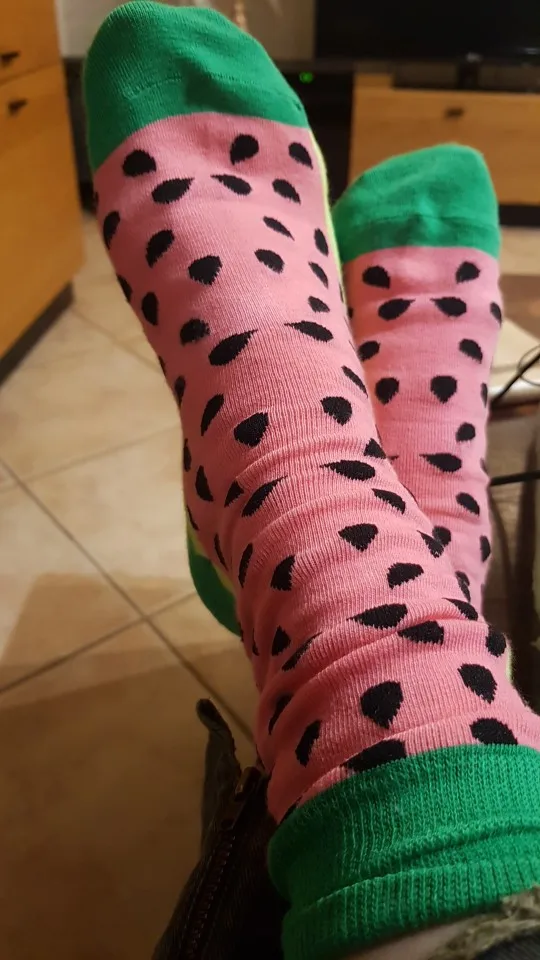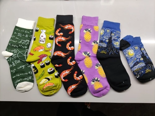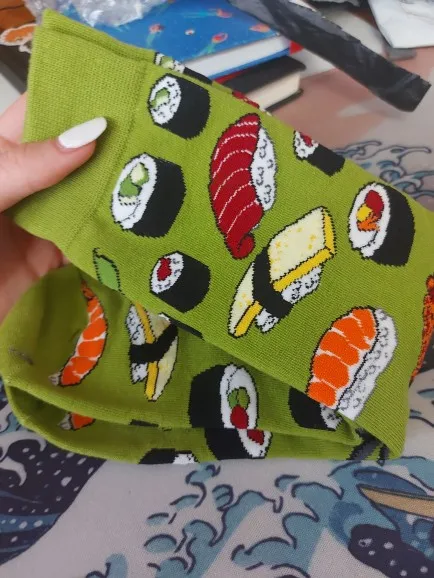 Заказывала носки с яйчницей и лимона и, носки хорошего качества, с яйчницей длиннее и размер побольше, с лимонами короче.