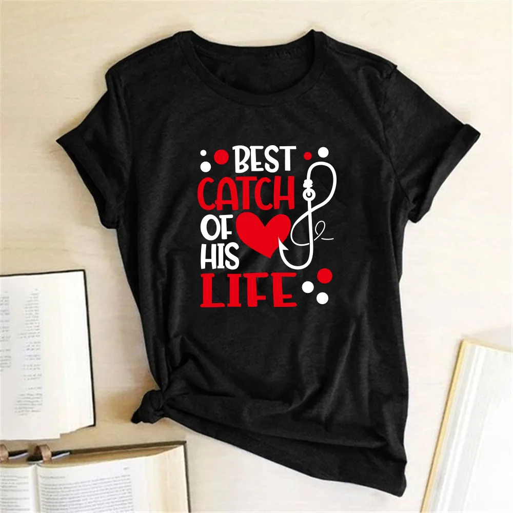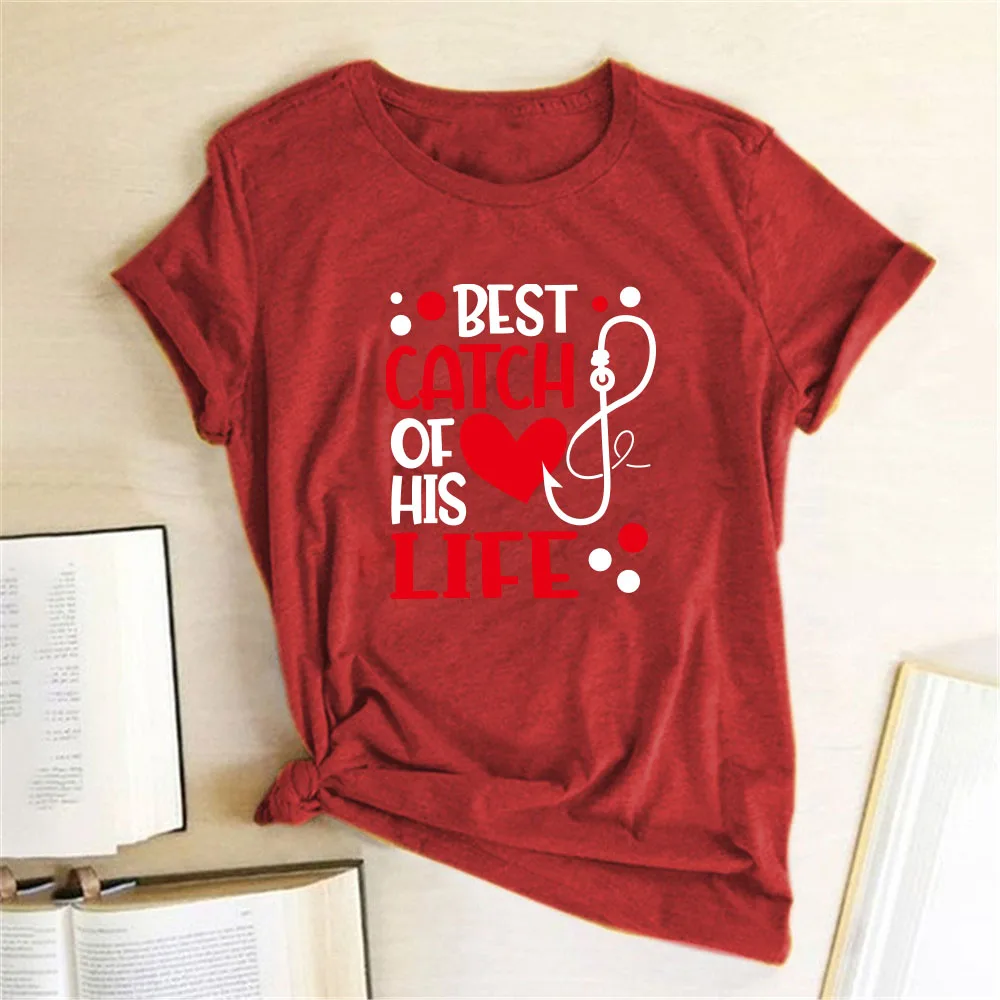 Парные футболки для мужчин и женщин One Lucky Fisherman Best Catch of His Life, Забавные топы с принтом, футболки, подарок на день Святого Валентина