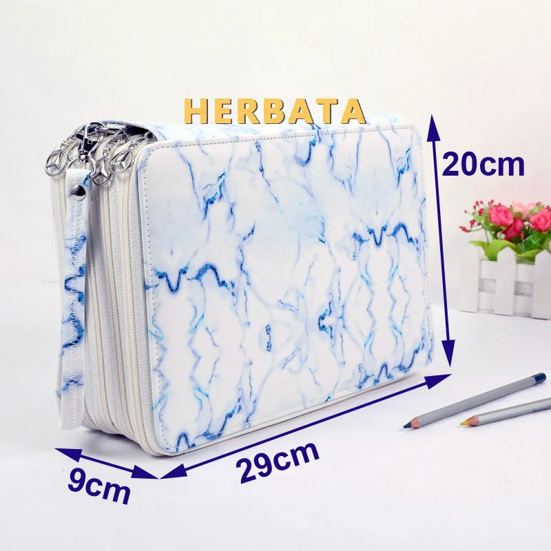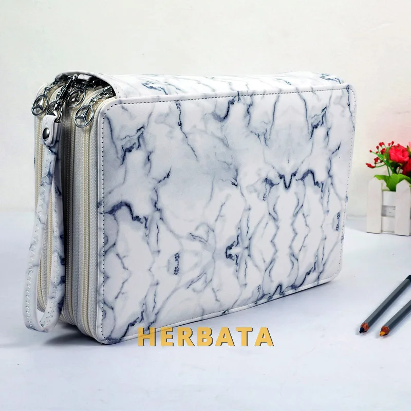 Держатель для карандаша большой вместимости, кожаный, креативный, с мраморным узором, на 216 слотов, 4 слота, на молнии, Канцтовары для творчества