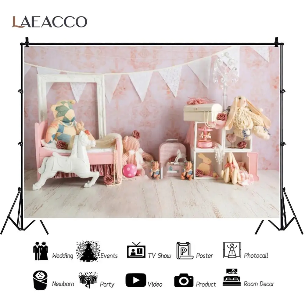 Laeacco розовый стены и пола для новорожденных вечеринка по случаю рождения ребенка фон для фотосъемки с изображением Игрушки для девочек номер Декор Фон для фотосъемки фотосессия Фотостудия