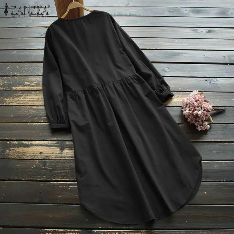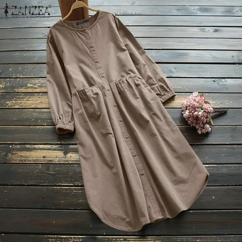 Длинное платье-рубашка ZANZEA, женское повседневное однотонное Длин...