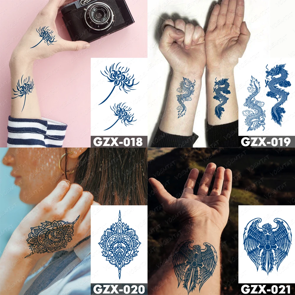 После контакта с кожей, окислительно активированный пигмент будет выглядеть синим и черным, что также является цветом настоящей татуировки. Не бойтесь потереть, это более Реалистичная татуировка на две недели Новые материалы, отличные цвета, более реальные