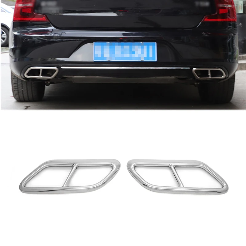 Для Volvo 2016 - 2020 S90 V90 S60 Автомобильный задний двойной глушитель Торцевая наклейка на трубу накладка из нержавеющей стали хромированные аксессуары