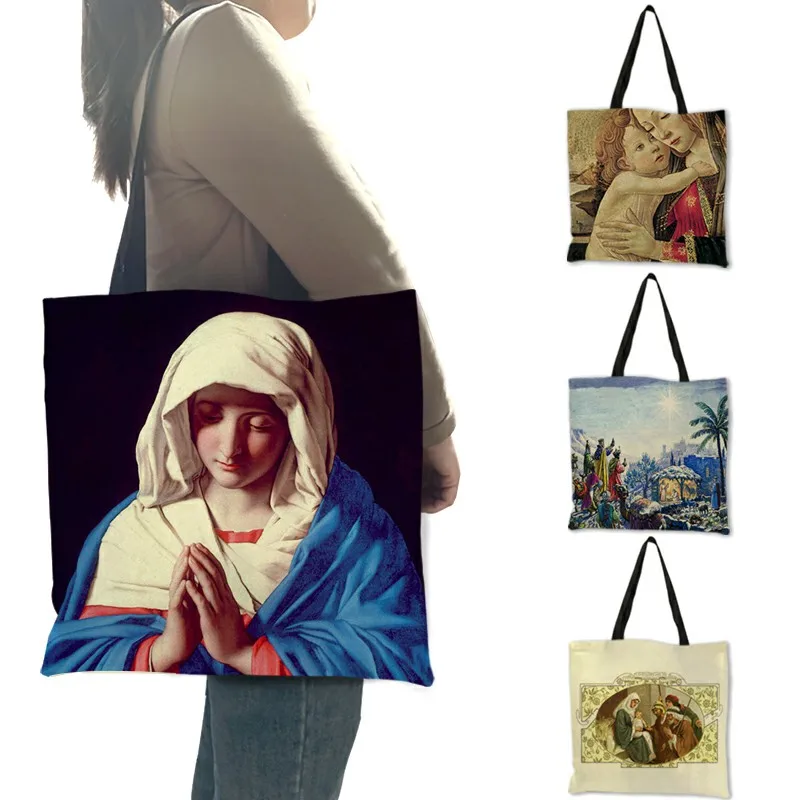 Девы Марии Иисус Картина маслом женские сумки большой емкости сумки на плечо для покупок путешествия ежедневное использование B13229