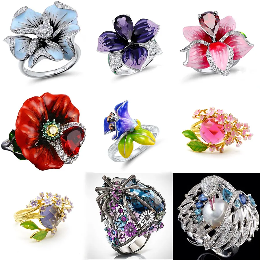 Эмалированные глазурованные кольца ручной росписи для женщин больша...