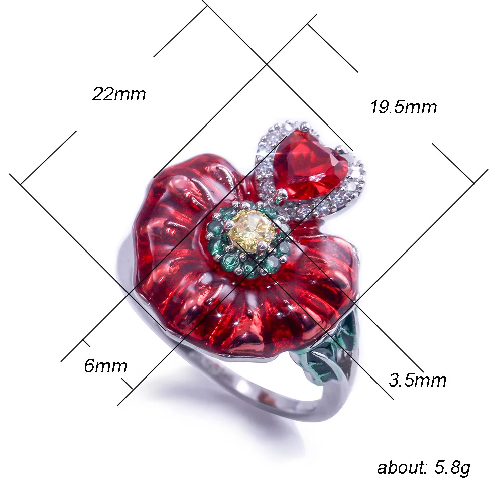 Оригинальные креативные эмалевые кольца с красной розой для женщин, уникальное очаровательное свадебное кольцо с сердцем из циркония, модное свадебное ювелирное изделие в стиле бохо