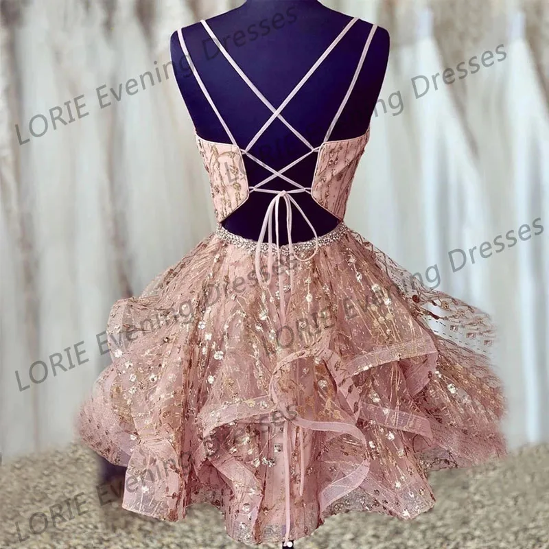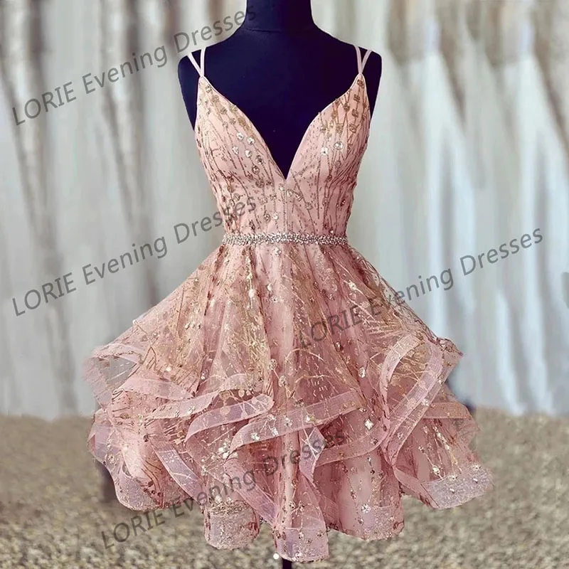 Короткое блестящее платье LORIE для выпускного вечера с корсетом и V-образным вырезом, розовое вечернее платье с оборками для праздников, выпускного вечера, коктейльное платье, женское платье