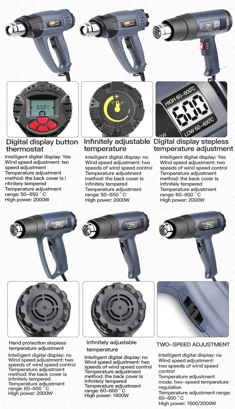 AIRAJ тепловой пистолет горячего воздуха пистолет комплект Двойной температуры настройки с насадками для ремесел термоусадочная оберточная трубка удаление краски