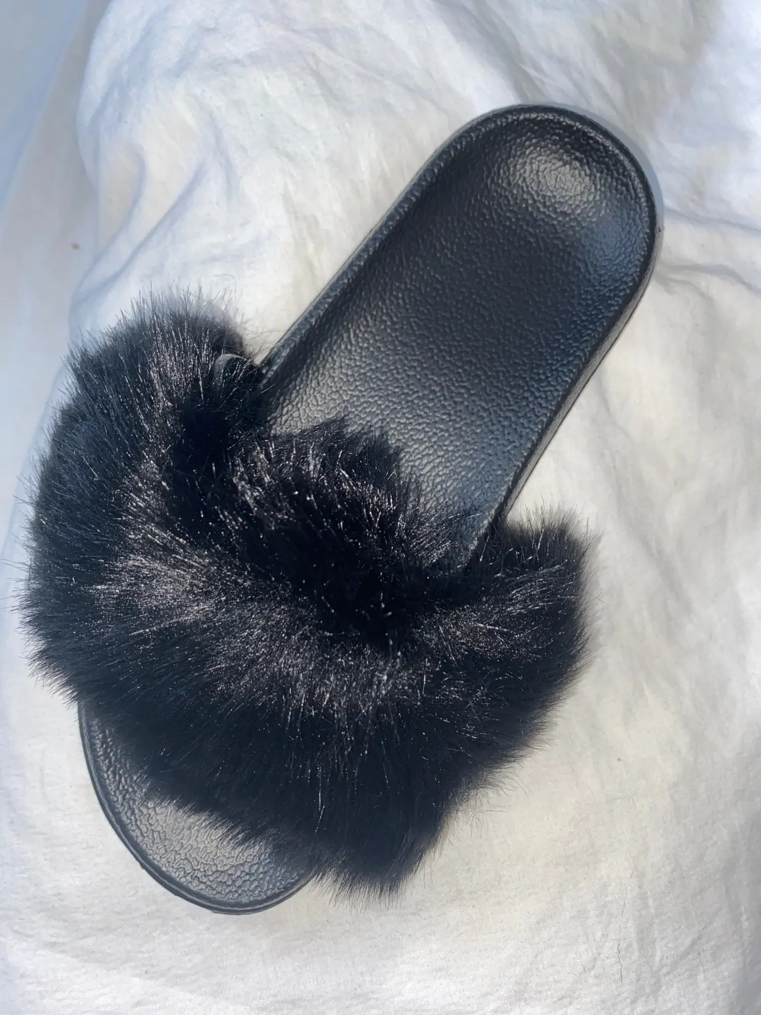 Шлепанцы женские меховые, роскошные, с пушистым мехом