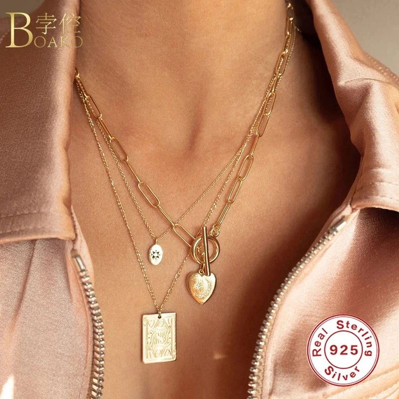 Многослойные цепочки BOAKO, ожерелье для женщин, серебро 2020 пробы...