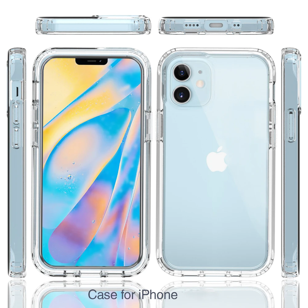 Style 10Heavy Duty Armor Plain 360 Clear PC + TPU Case For iPhone 12 Cover