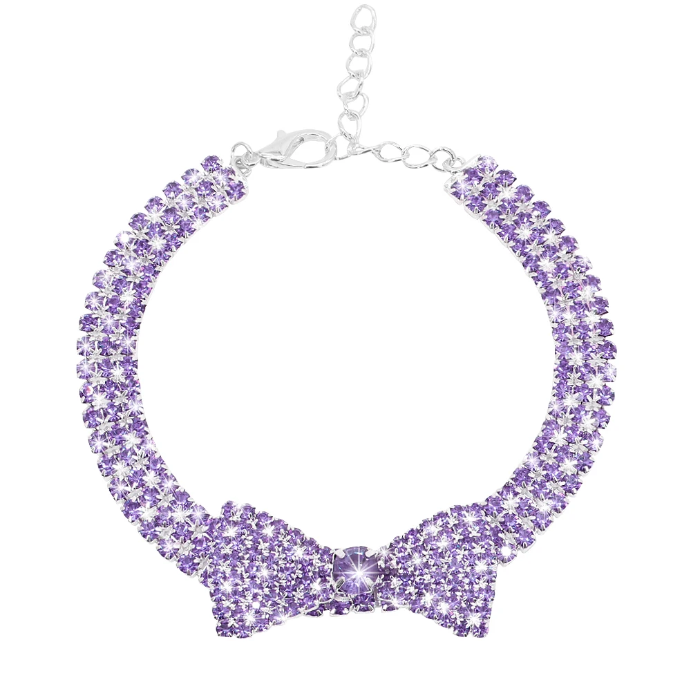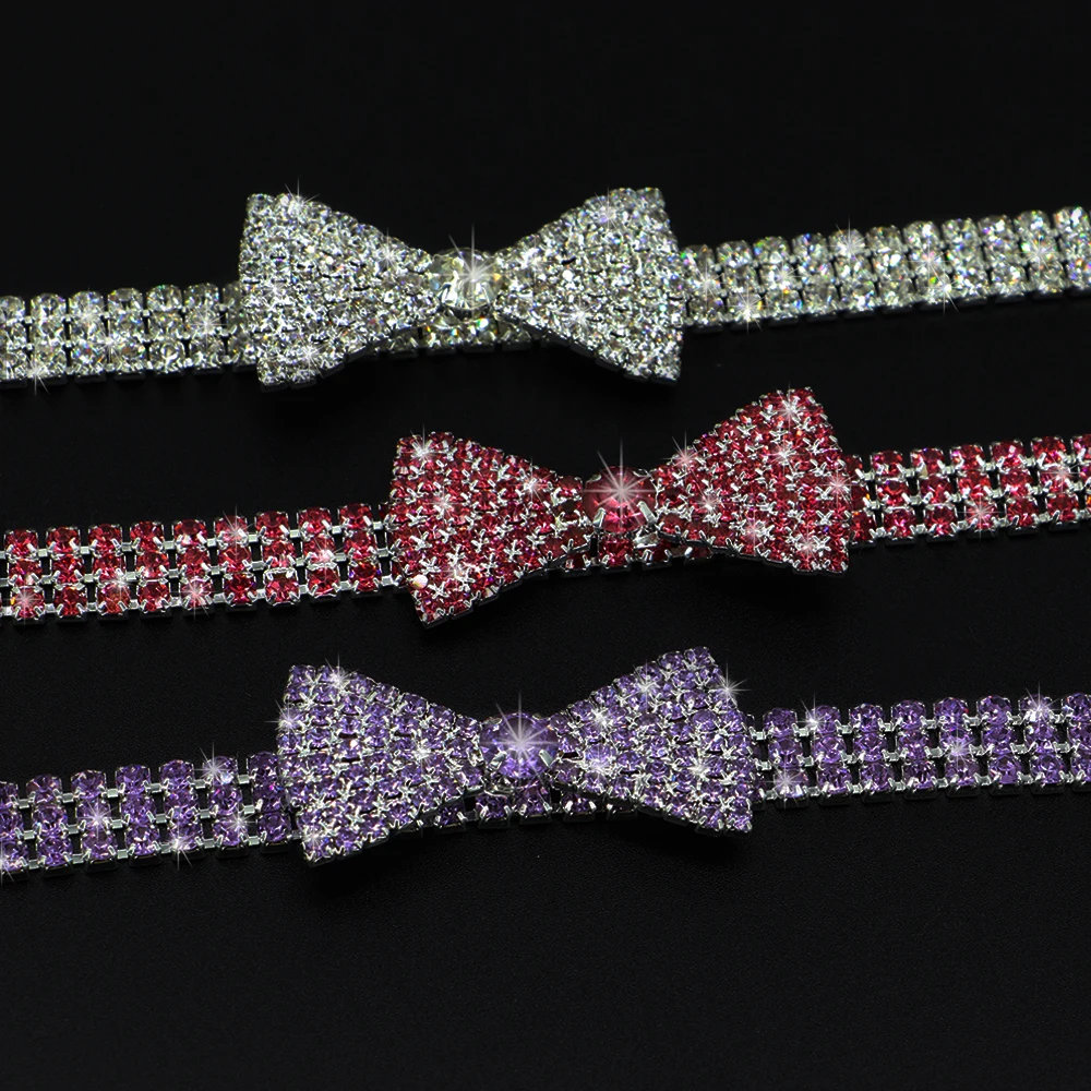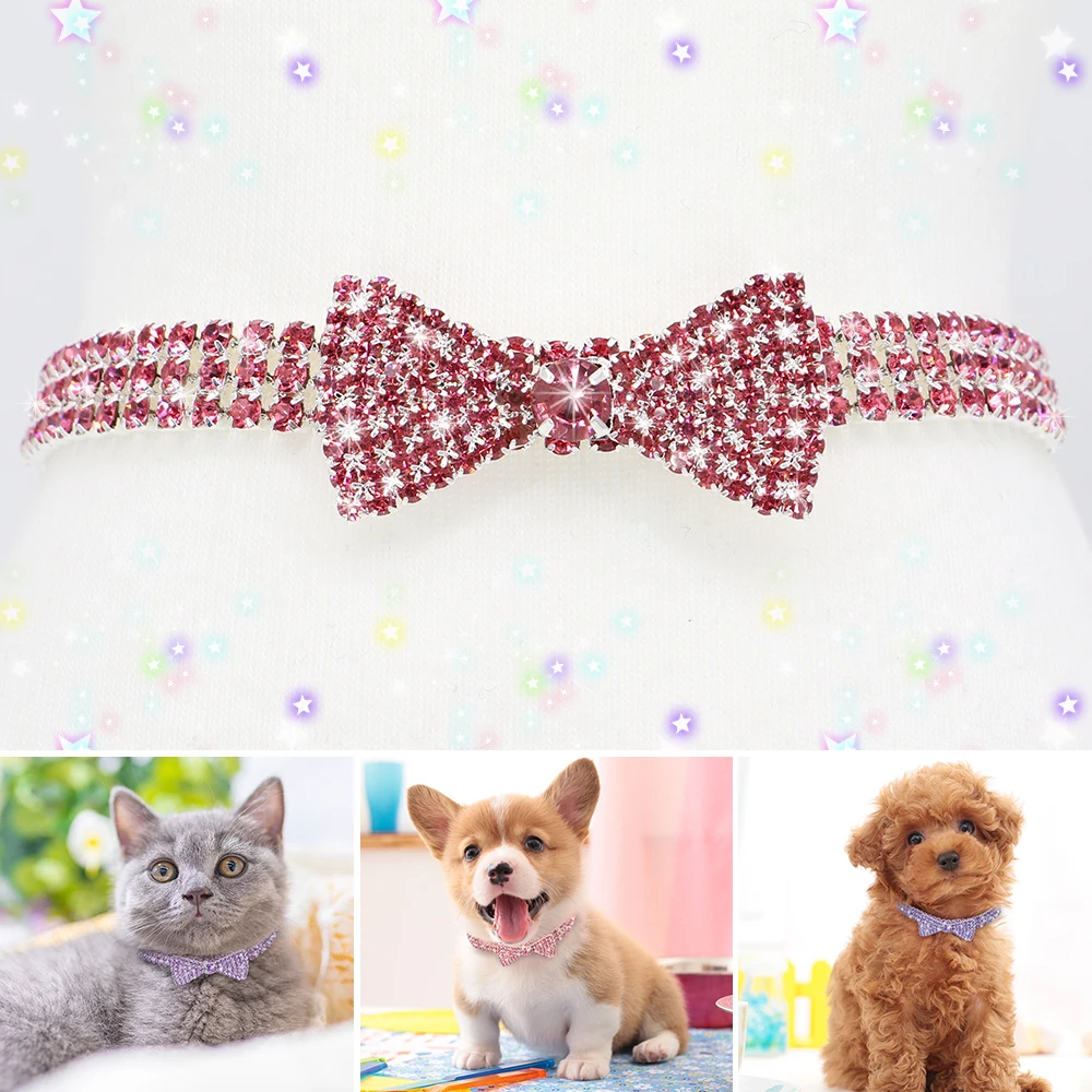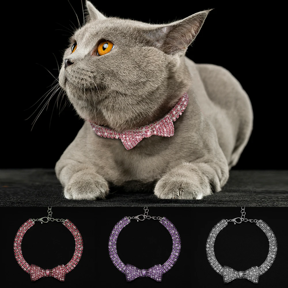 Блестящие стразы кошачий ошейник ожерелье котенок щенок ожерелья маленький ошейник для кошек и собак с украшением в виде кристаллов, с бантом, аксессуары для домашних животных