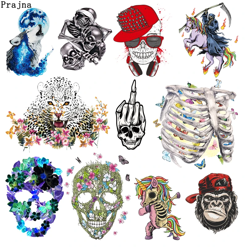 Термонаклейки Prajna в стиле панк с леопардовым цветочным принтом, термонаклейка Vynil, термонаклейка с черепом и бабочкой, куртка с нашивкамиMOQ:1 шт.Размер: как на картинке