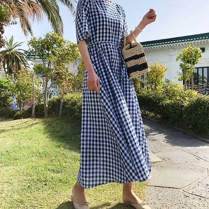Платье ZANZEA женское в клетку, Асимметричный Сарафан в стиле пэчво...