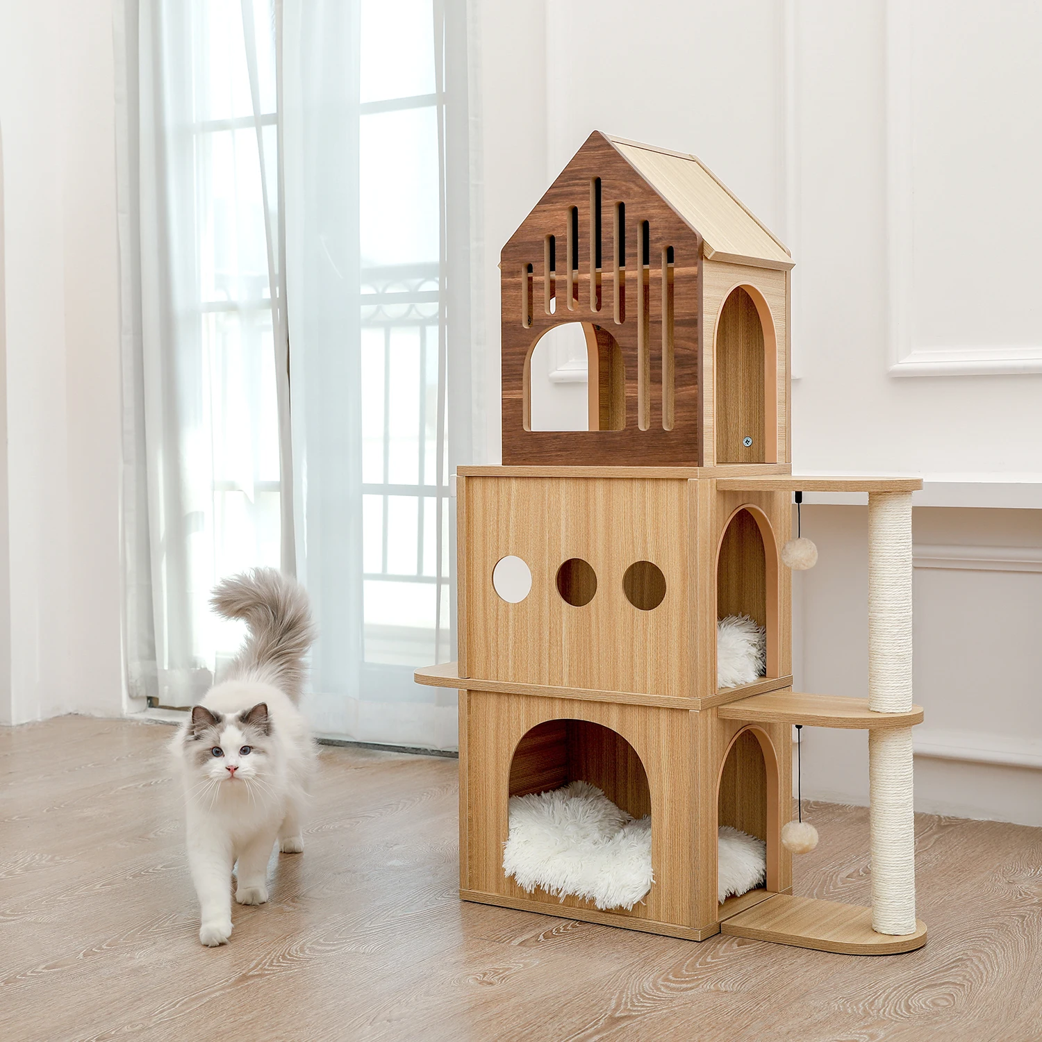 Простая сборка: не беспокойтесь о сборке нашей кошачьей квартиры. Поставляется с пошаговым руководством по эксплуатации и инструментами.