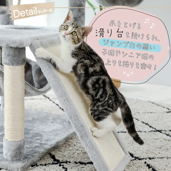 · Прочный и удобный:Наше кошачье дерево изготовлено из толстых и экологически чистых карбюраторов, сертифицированных по природным частицам. Прочные коробки и прочные когтеточки полностью покрыты натуральными сизальными веревками, которые обеспечивают стабильность всего кошачьего дерева. Стоит отметить, что летом ваши пушистые друзья будут в прохладе. Подвижные коврики и мягкие подушки не только делают кота более комфортным для отдыха, но и предотвращают скольжение.