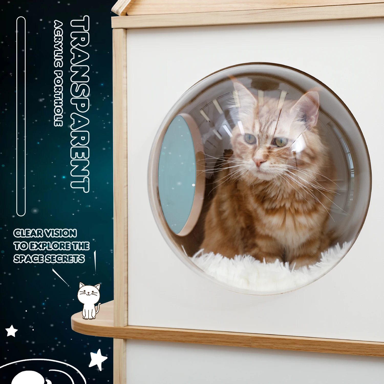 Продуманный дизайн: акриловая корыта точно такая же, как шлем космонавта и предлагает лучший вид. Платформы с обеих сторон позволяют вашему маленькому тигру прыгать, лазить, ходить, как в космической капсуле, и наслаждаться хорошим временем с ним