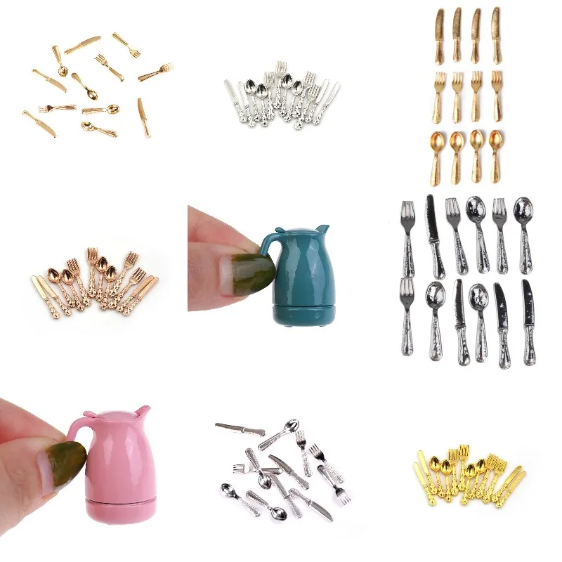 Набор миниатюрных столовых приборов, моделируемая кукольная мебель ...