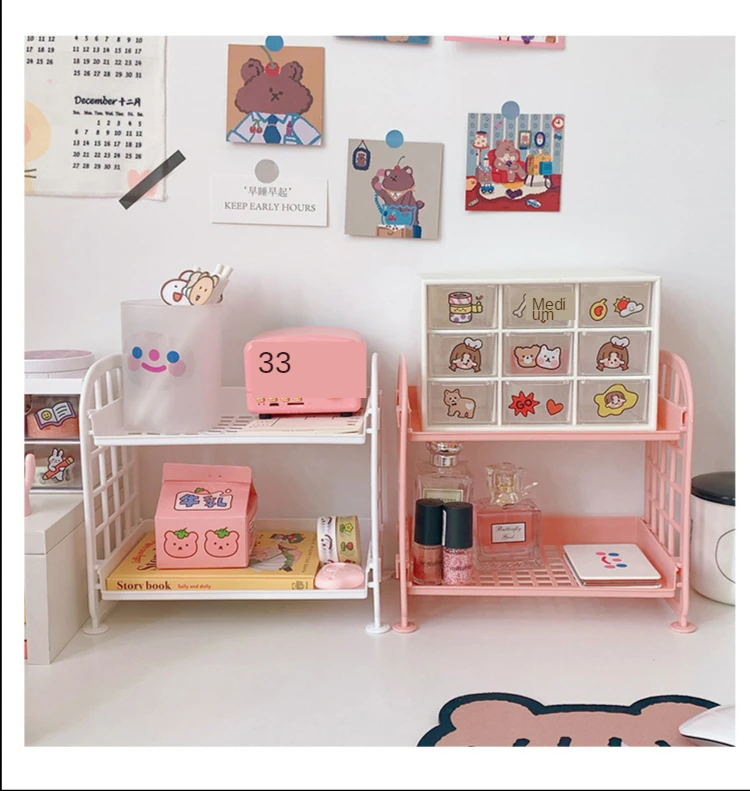 INS офисная полка для хранения Двухярусная подставка розовая Милая ...