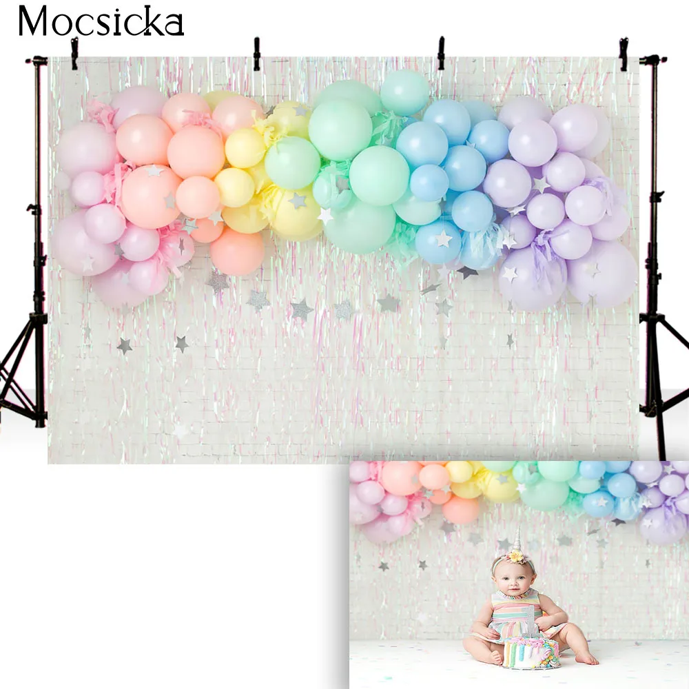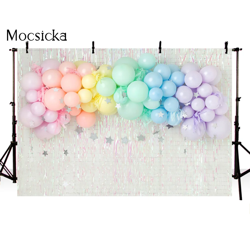 Радужные воздушные шары торт разбивает телефон Серебряный Блестящий мерцающий маленькая звезда портретный фон для новорожденных детей