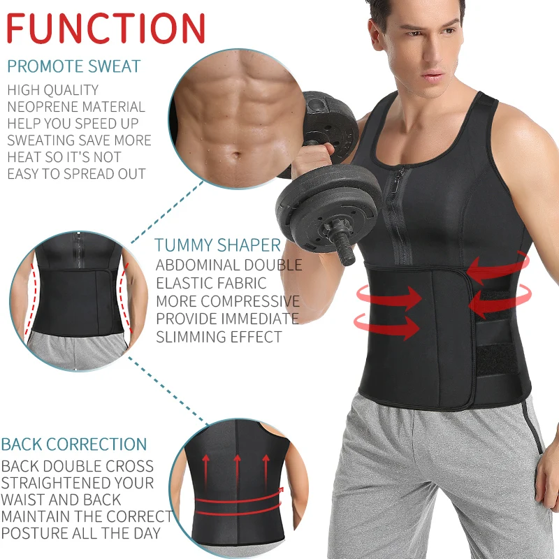 Рожденный от пота: основа: полиэстер; Подкладка: неопрена. По сравнению с традиционным жилетом для сауны, мы отобрали материалы и молнии более высокого качества, а также внешний регулируемый пояс, ткань более мягкая, эластичная, ускоряет потоотделение, а молнии более прочные. Ношение этого мужского жилета для тренировок во время тренировок поможет вам уменьшить излишки воды и удерживать тепло тела, сжигая больше калорий, а пот более чем в 3 раза больше, чем обычно.
