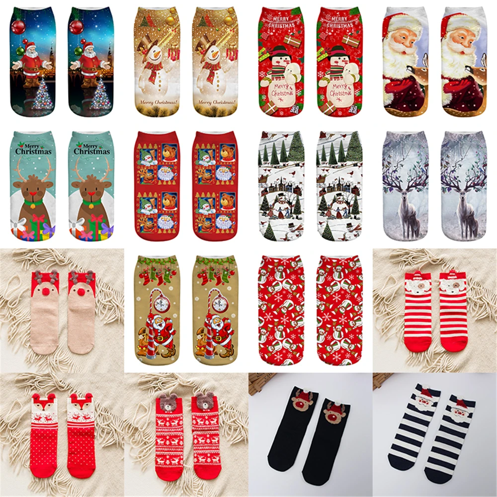 Новогодние 2022 рождественские носки с 3D принтом Санта-Клаус Лось ...