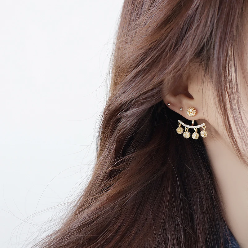Женские серьги-гвоздики с кисточками, золотистые серьги в богемном стиле из настоящего золота 14 к с цирконием, свадебная бижутерия, аксессуары с подвесками