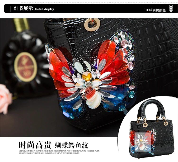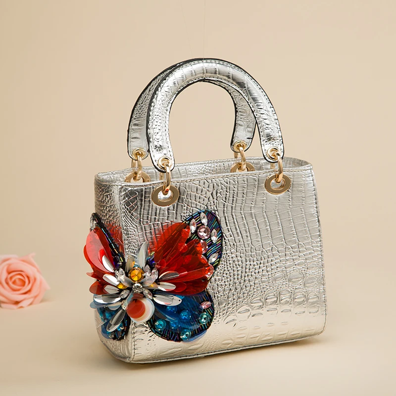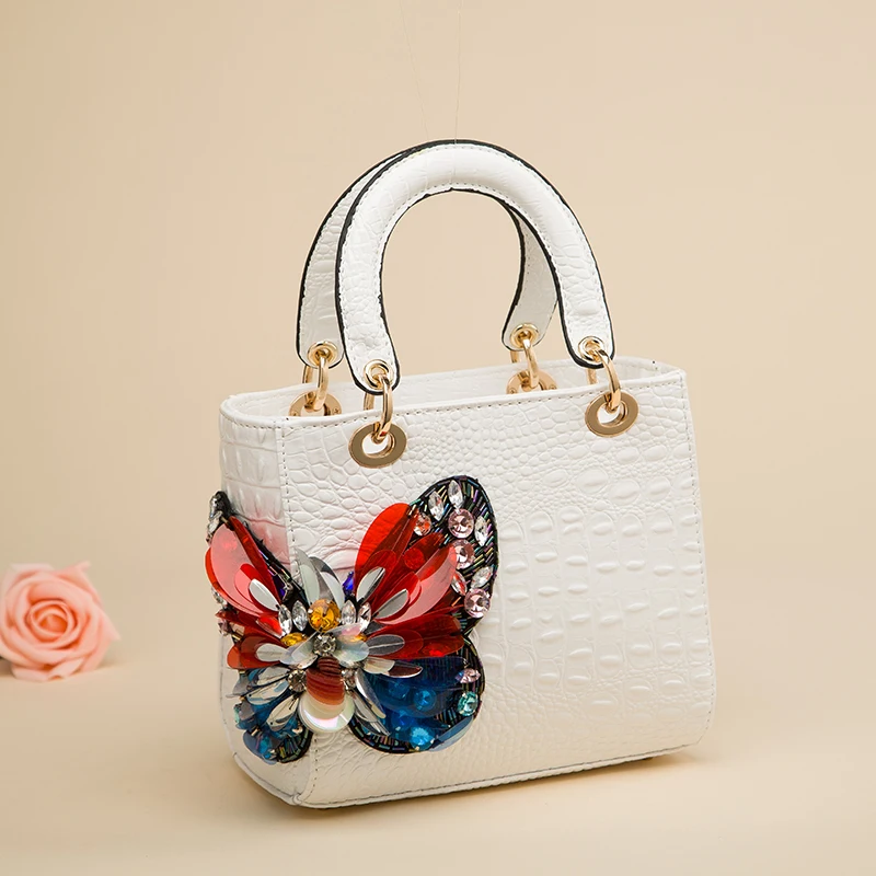 Новинка 2020, женская сумка-тоут с крокодиловым узором и инкрустированными бриллиантами, дизайнерская женская сумка-мессенджер в виде бабочки для принцессы, сумка на плечо с шарфом