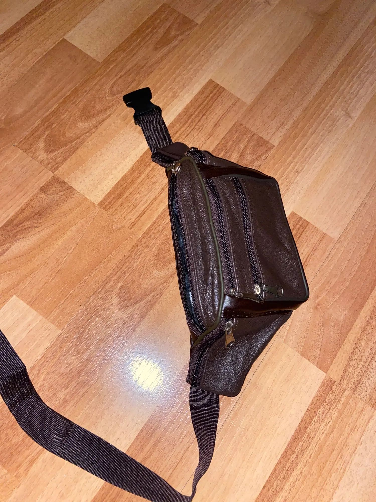 Сумка поясная мужская из натуральной кожи, с несколькими карманами и молниями, регулируемый ремень
