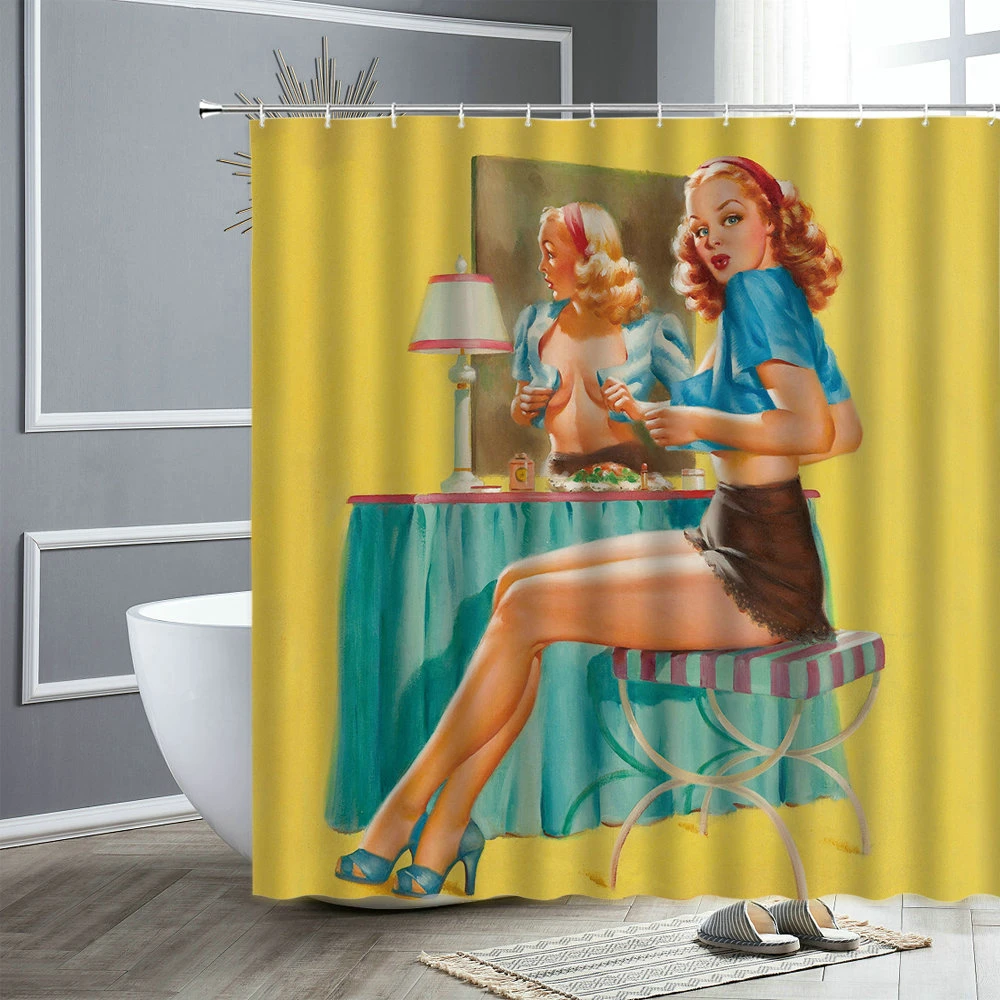 Занавеска для душа с привлекательной девушкой, модная Водонепроницаемая тканевая шторка для ванной комнаты с 3D-принтом в американском стиле, декор для ванной комнаты