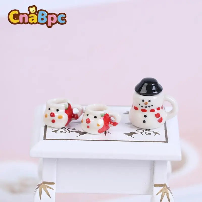 1 комплект, кукольный дом 1:12, миниатюрные чашки, набор кастрюль, мебельная игрушка, Рождественская керамика, чашки для кофе, чая, аксессуары для кукольного домика