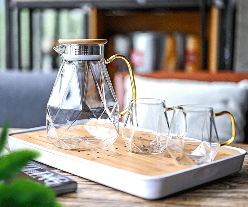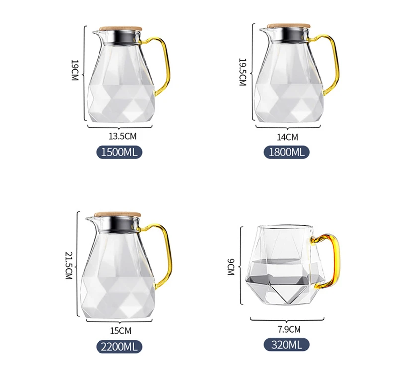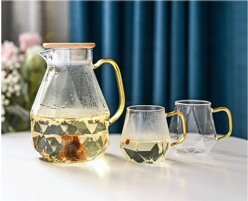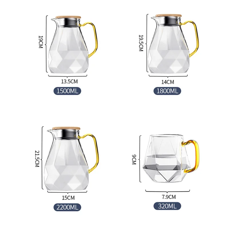 Набор стеклянного чайника с алмазной текстурой, прозрачный кофейник для горячей и холодной воды, домашний термостойкий чайник большой емкости